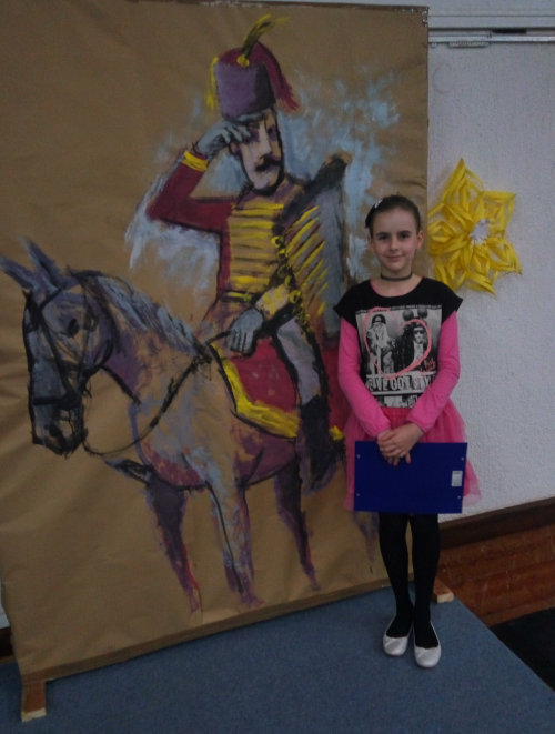 Konjanik s Trga Dragi bane moj, zahvaljujem Ti na hrabrosti svoj! Borba Tvoja za Hrvate, ono kad bio si ban, ostvarila je najljepši san. Jahao si na konju, nježan i blag si bio, svakome pomoći htio! Konjanik na Trgu ponosno stoji, dane i godine broji. Svatko ga zadivljen gleda, kao da je dar s neba! Patrik Grubešić je super/M. Janković, B.Glasnović,K.Kosić, R.Pavić, L.Juras/