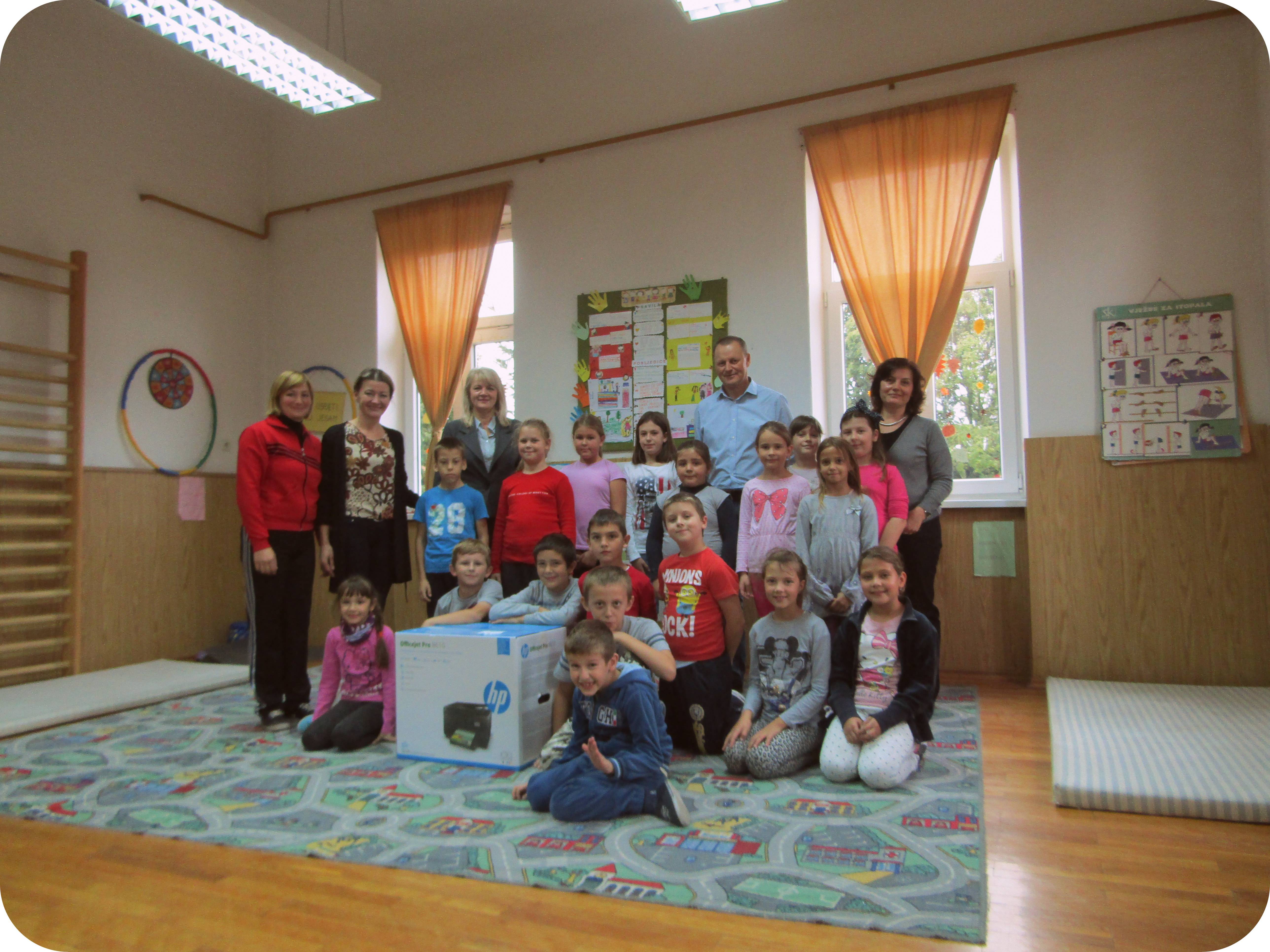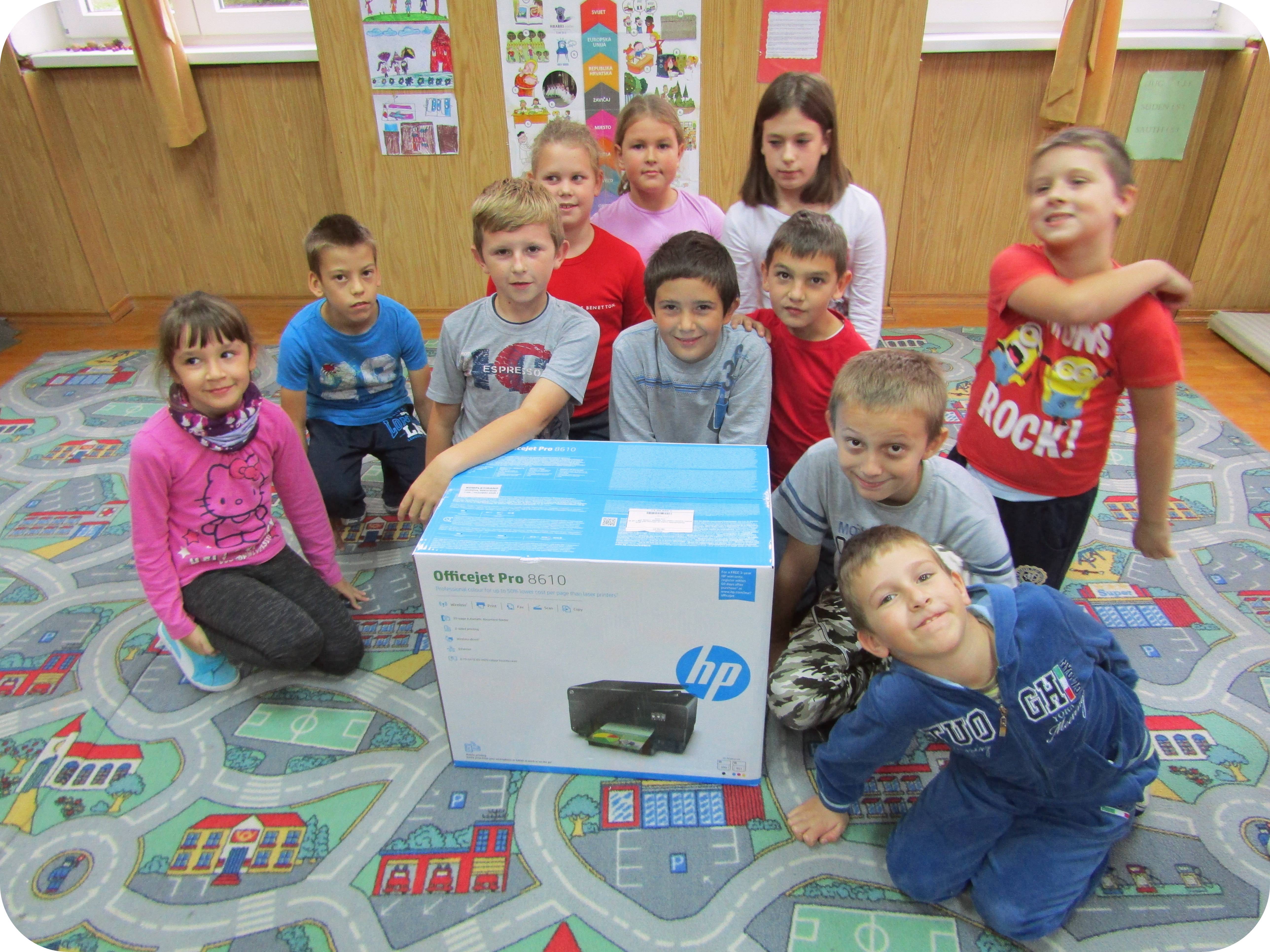 Sretni učenici pored svog novog multifunkcionalnog uređaja