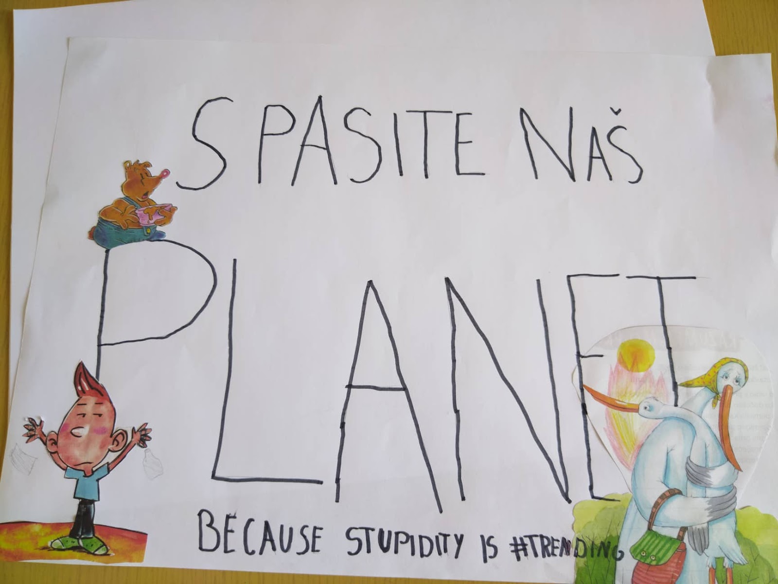 Učenici su zatim poslušali Gretin govor postavljan na TED talku te su se podijelili u grupe u kojima su morali napisati govor o klimatskim promjenama. Pri kraju sata razgovarali smo o prosvjedima te su učenici na kraju sami morali napraviti svoje transparente u kojima su u središtu bile, naravno, klimatske promjene.