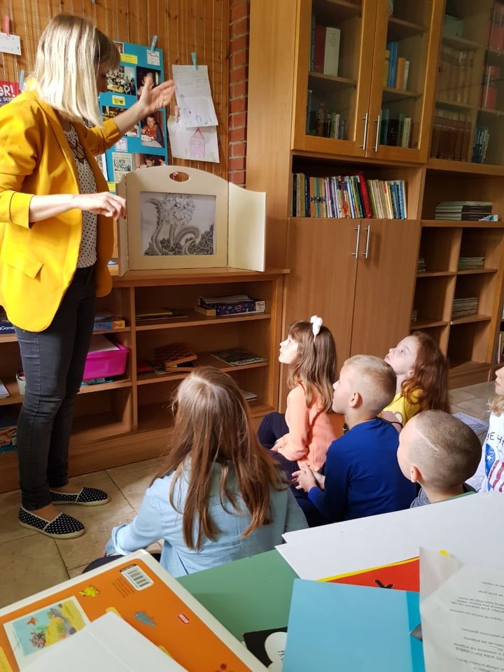 Nakon toga, prisjetili smo se lektire iz prvog razreda „Plesna haljina žutog maslačka“ koju smo predstavili u drugačijem obliku: ilustracije navedene slikovnice predstavili smo u kamishibaiu, malenom drvenom kazalištu koje nam dolazi iz Japana. Kada je mala kazališna predstava završena, u školskoj smo knjižnici crtali malu livadu na papiru, a nakon svega, razgovarali smo što bi se dogodilo ako bi maslačak postao izumrla vrsta. S time se suočio Kristofor u slikovnici Kristofor Grickić koju je školska knjižničarka pročitala učenicima. Na kraju smo zasadili dinje i rotkvicu koje vrlo uspješno rastu u drugom razredu. Sutradan smo se nadovezali na prethodnu tematiku u lektiri Pismo iz Zelengrada; igrali smo se, razgovarali o slikovnici, no najzanimljiviji dio sata bio je kada su učenici predstavili svoje ilustracije lektire Pismo iz Zelengrada, i to u kamishibaiu.