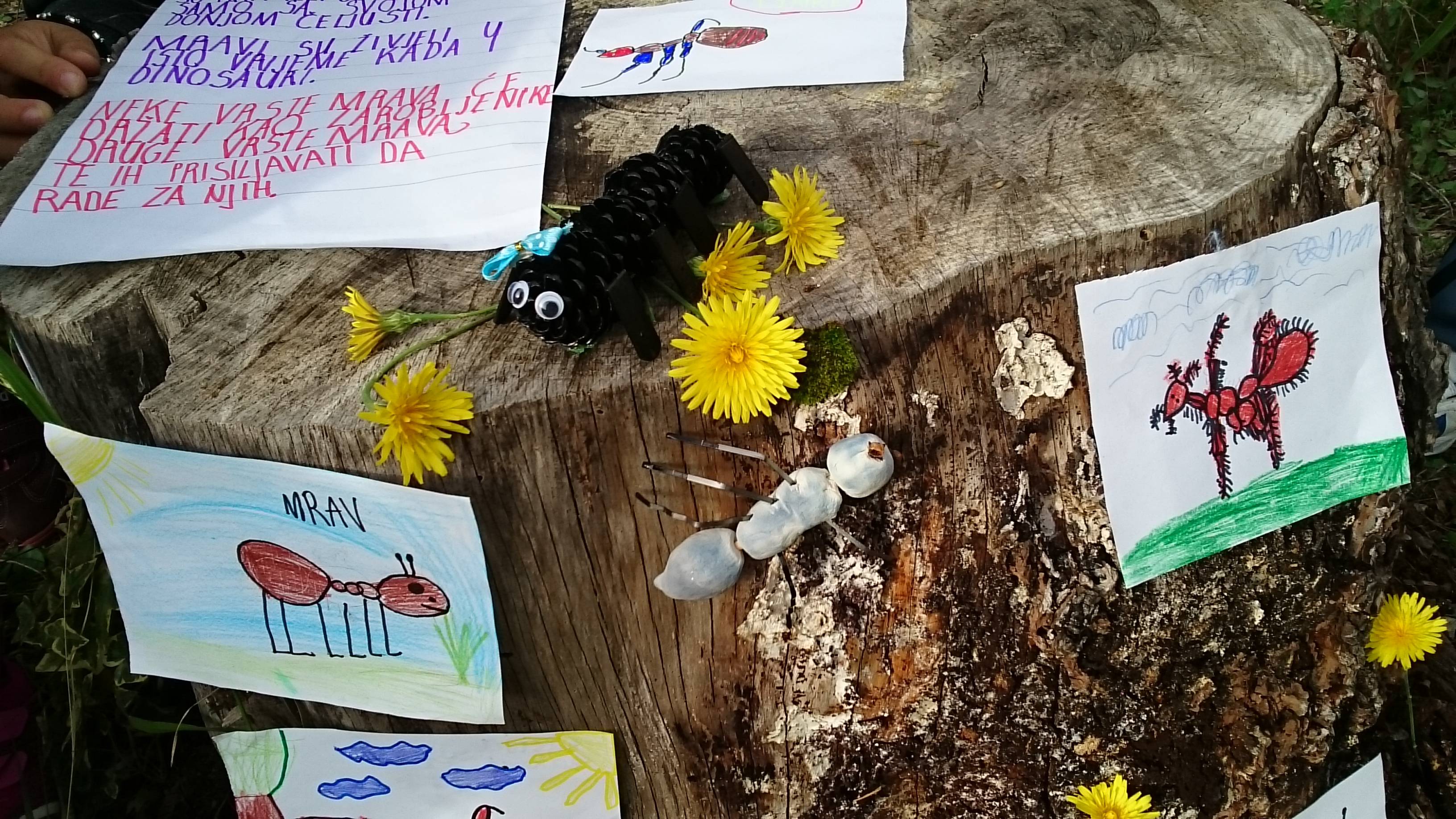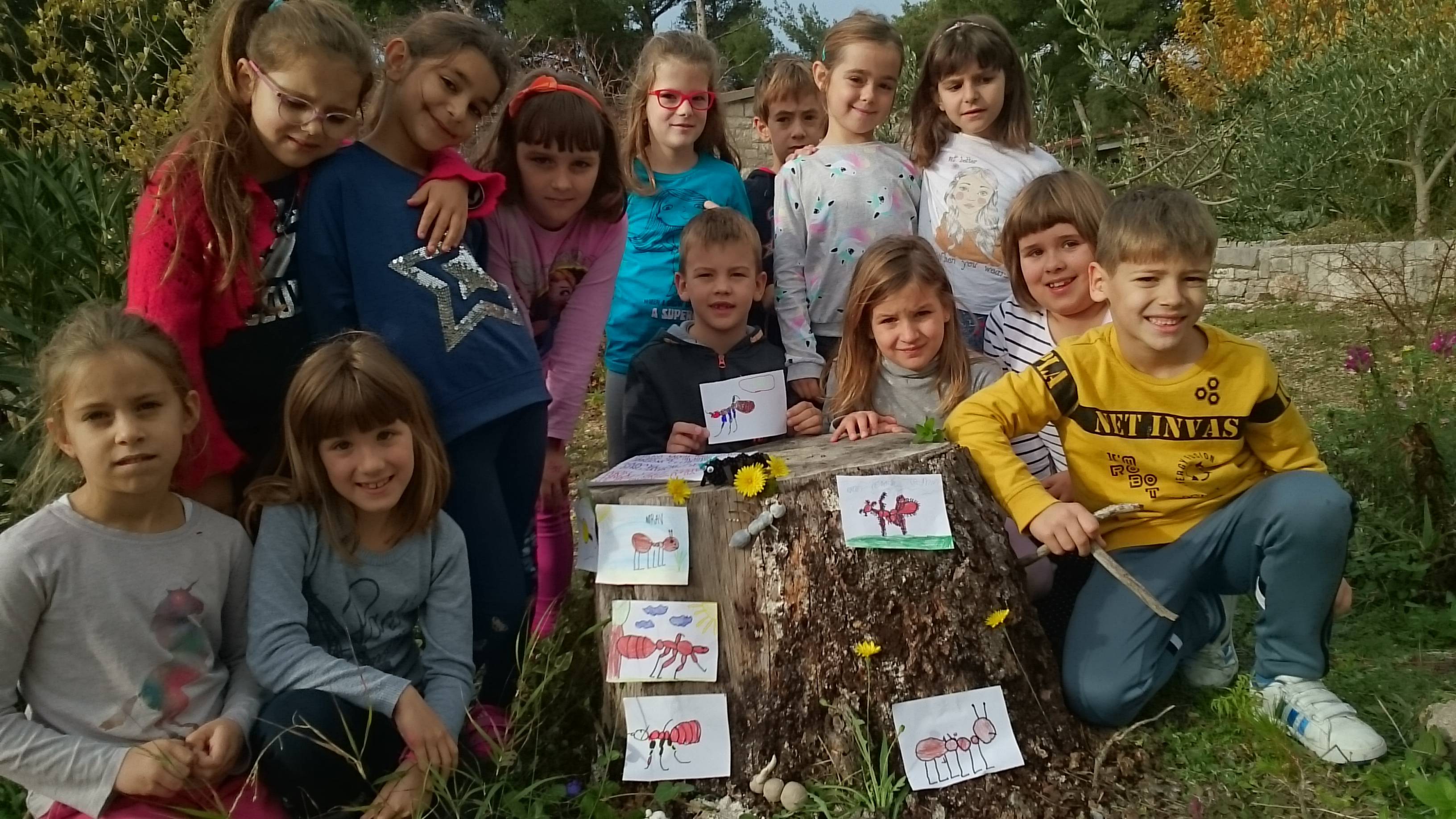 Učenici prvog razreda, Darwinovi pronalazači, promatrali su mrave u školskom vrtu (masliniku), te ih je posebno razveselila potraga za mravinjacima. Od plastelina su izrađivali figure mrava. Nekolicina se okušala i u crtanju.
