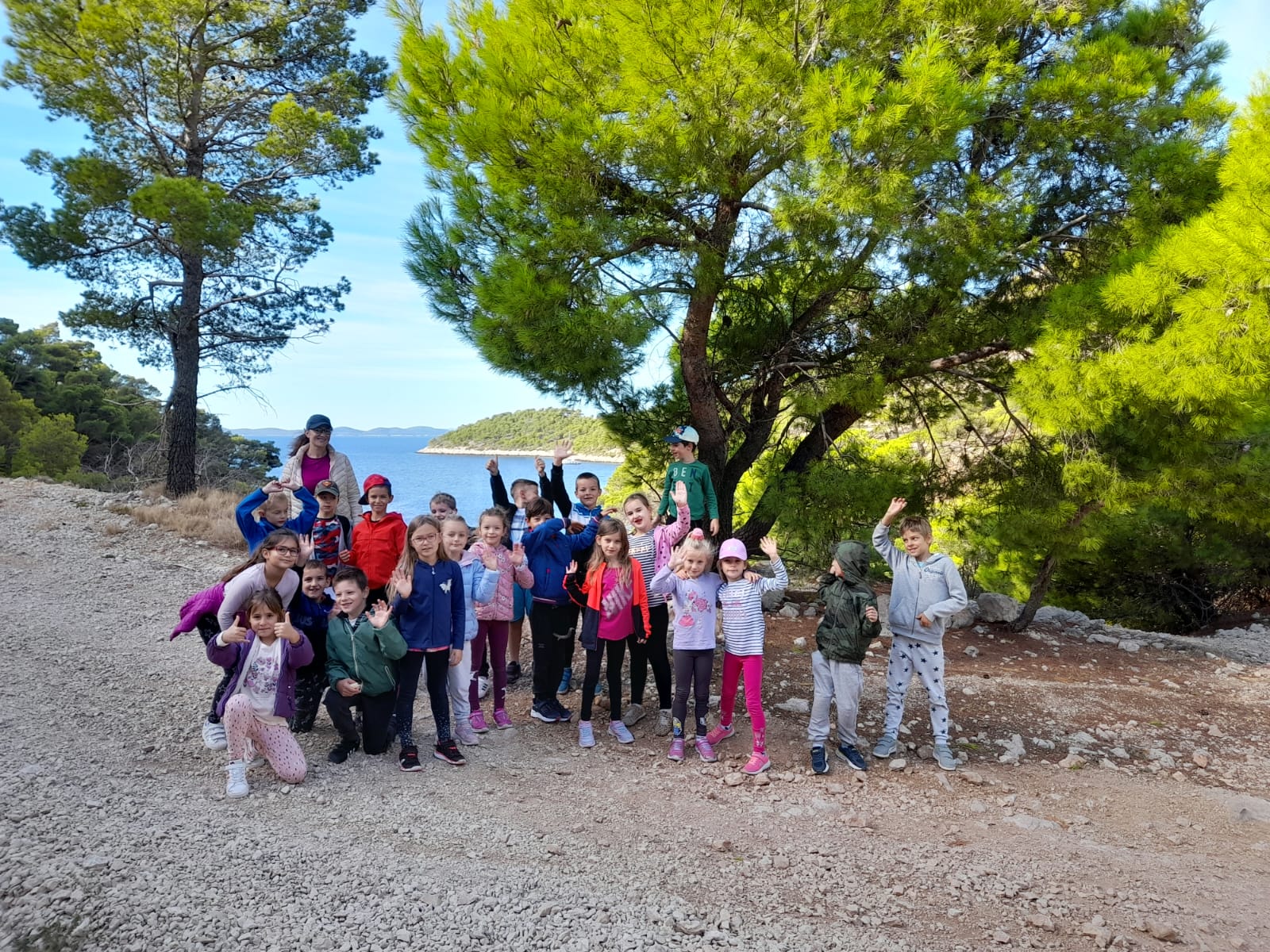 Učenici 1. razreda sa svojom učiteljicom zaputili su se brodom na prvi izlet. Promatrali su svoje mjesto s mora, plaže, vinograde u jesen, vojni tunel kojeg su pješice obišli te uzgajalište tuna. Cijelim putem su pjevali i crtali. Vrijeme provedeno na izletu brzo im je prošlo te s nestrpljenjem čekaju sljedeći.