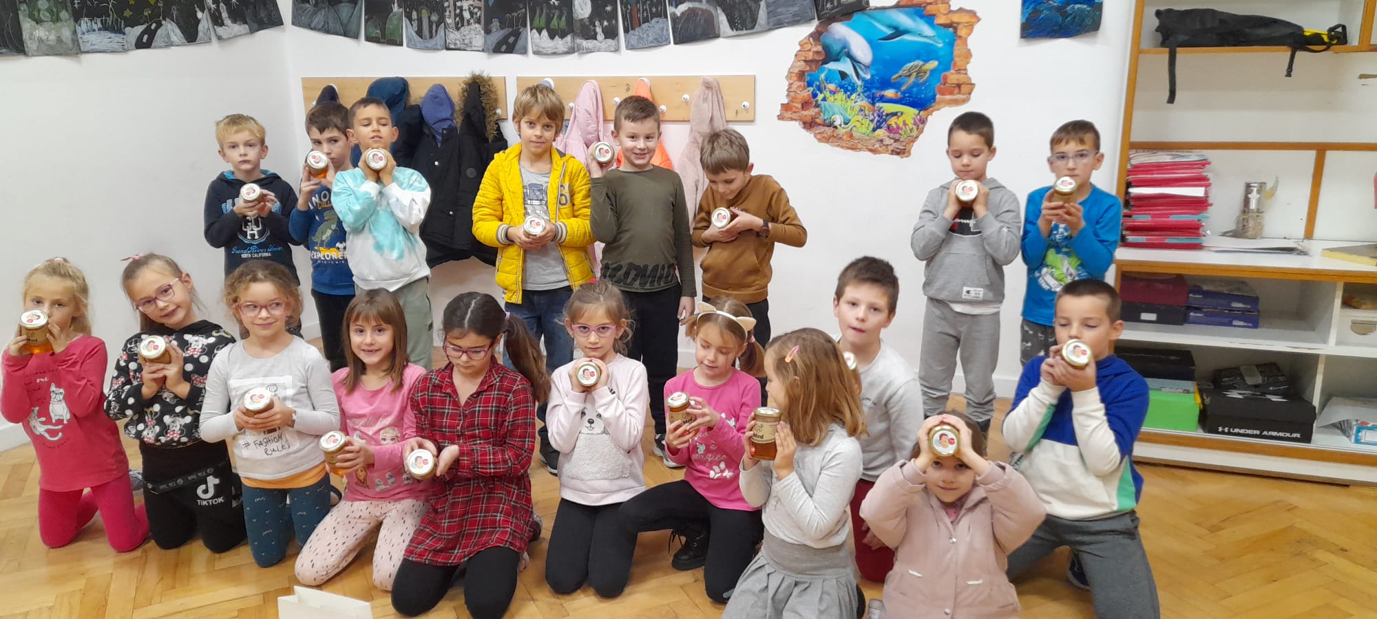 Prvaši su 7.12. obilježili Školski medni dan. Svrha provedbe Programa je podizanje svijesti djece, od rane dobi, o potrebi konzumacije lokalnih poljoprivrednih proizvoda te ukazati na značaj pčelarstva u cjelokupnoj poljoprivrednoj proizvodnji. Cijeli dan smo posvetili pčelama i o njima naučili brojne zanimljivosti. Riješavali smo listiće, labirinte, zagonetke, bojali te pogledali crtić Pčelica Maja. Na kraju dana učenici su dobili poklon-vrećice u kojima je teglica meda i slikovnica Pčelica Jelica i Medo Edi, K. Halužan.