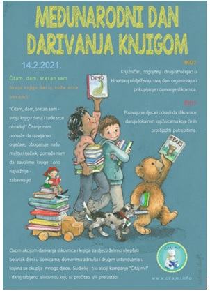 Čitanje djetetu od najranije dobi ima značajnu ulogu u njegovom razvoju te bi s čitanjem valjalo započeti već od njegovoga rođenja. Ono treba postati dio svakodnevnoga ugodnog druženja roditelja i djece. Nacionalna kampanja ”Čitaj mi!”, pokrenuta 2. travnja 2013. godine, ima za cilj poticati roditelje i druge odrasle osobe da s čitanjem naglas počnu što ranije kako bi ono postalo dio svakodnevnice na putu ka stvaranju posebne emocionalne veze između roditelja i djece, izgradilo njihovo samopouzdanje te stvorilo kulturu posjećivanja knjižnice. Međunarodni dan darivanja knjigom obilježit će se 14. veljače te će se u terminu od 13 do 18 sati organizirati akcija prikupljanja u školskoj knjižnici. Pozivaju se djeca i odrasli da na taj dan daruju slikovnicu ili knjigu koja im nije potrebna kako bi se ovom akcijom darivanja uljepšao boravak djeci u bolnicama, domovima zdravlja i drugim ustanovama u kojima se okuplja mnogo djece. Sudjeluj i ti, slikovnicu pokloni!
