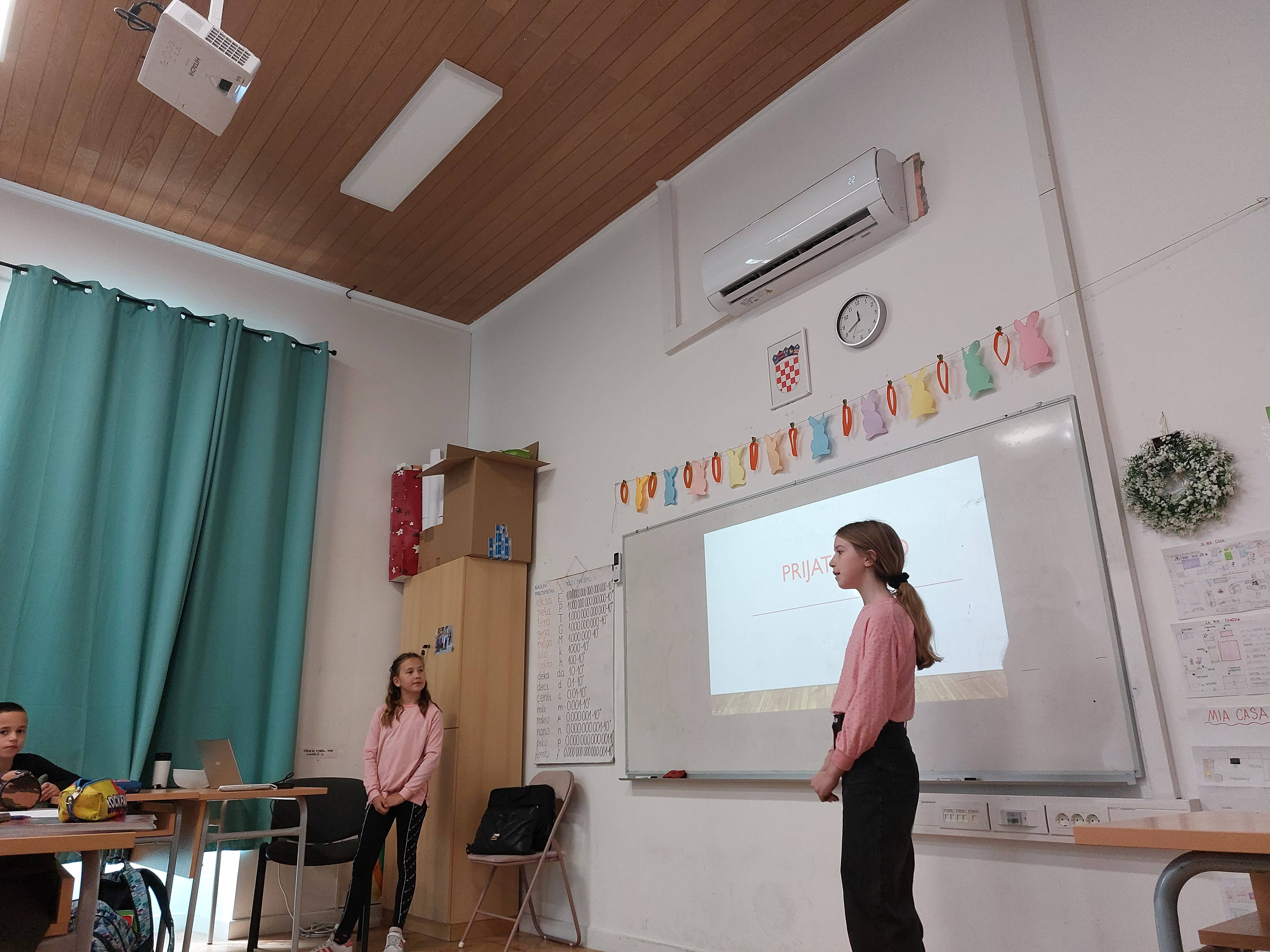 Učenici 4. razreda ovaj tjedan su imali neobičan sat razrednika. Ulogu učiteljice Vedrane na jedan sat preuzele su učenice Marija Bartulović, Larisa Jurić i Jana Santo. Učenice su prvo igrama podijelile učenike u grupe u kojima su otkrili temu sata – Prijateljstvo. Kroz predavanje, razgovor i pitanja učenici su zajednički otkrili koji je to recept za dobro i uspješno prijateljstvo. Za kraj sata učenice su pripremile i kviz znanja, a najbolja grupa odnijela je slatku pobjedu i značku prijateljstva. Koliko su se dobro naše učenice snašle i što smo sve naučili pogledajte u galeriji.