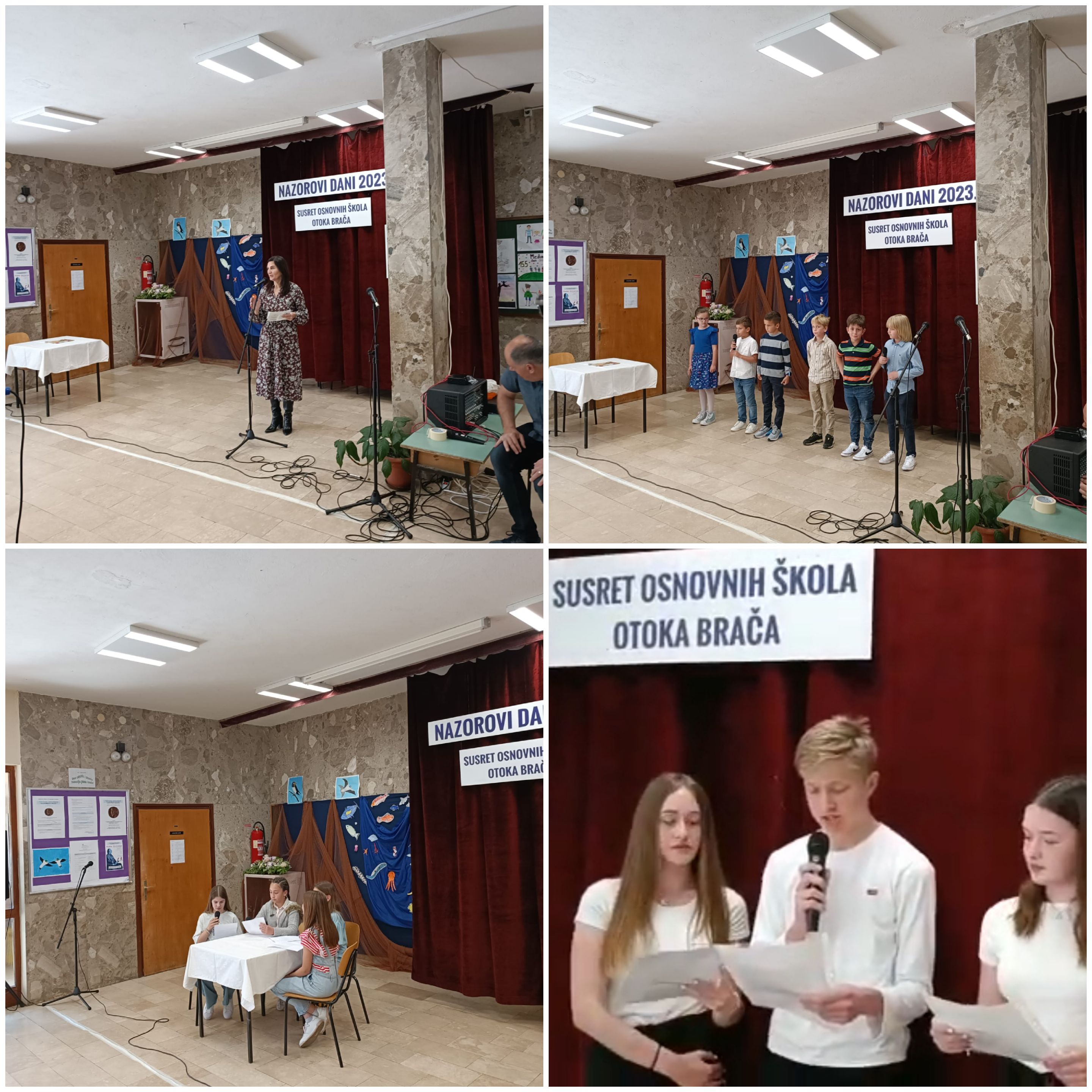 Učenice Dora Okmažić i Lea Marinelić zajedno s Dominikom Pivčevićem predstavile su svoju školu čitajući što je naš poznati književnik podrijetlom s Brača, Vladimir Nazor, napisao o Braču.