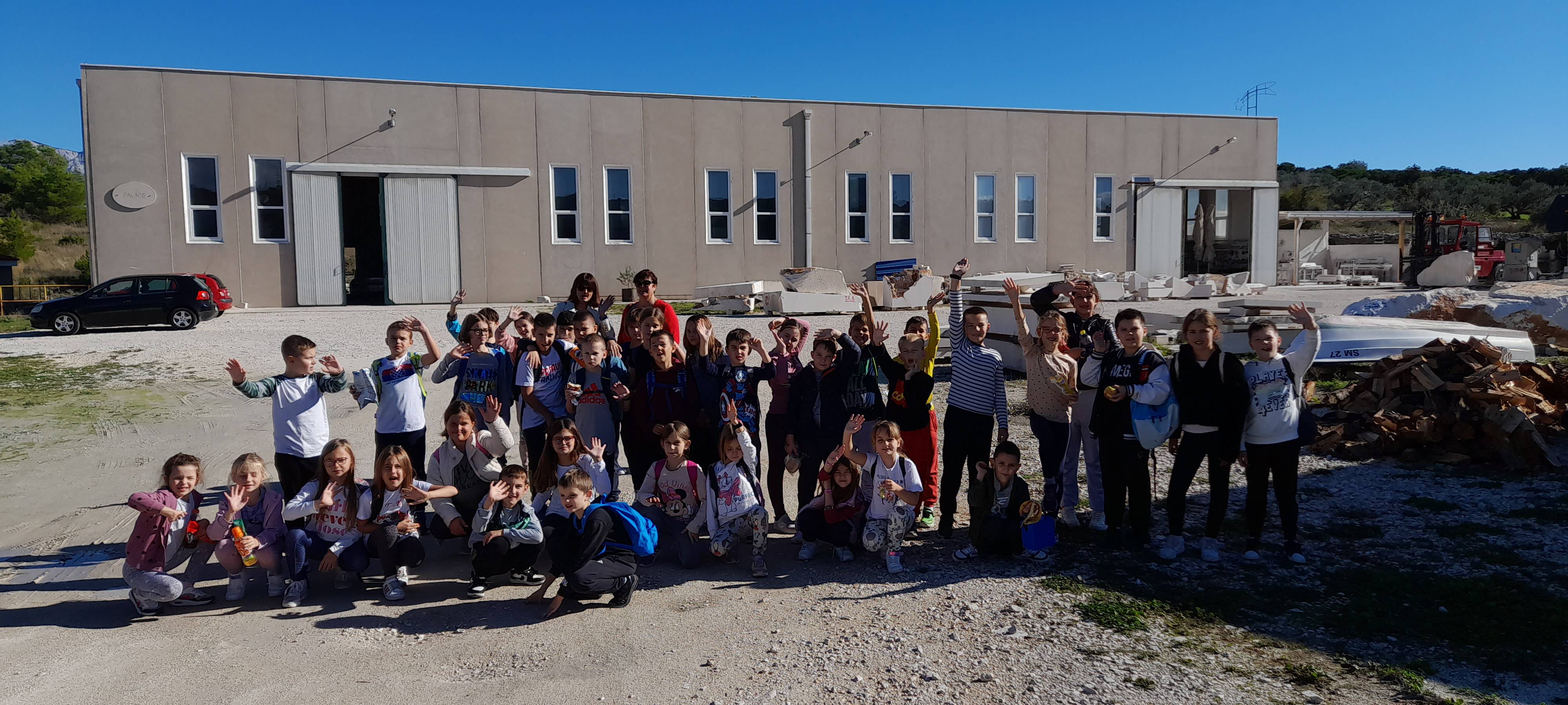 U školi nas je pedagoginja lijepo ugostila a vrijeme za odmor i marendu proveli smo u parku. Na kraju su Posjetili pilanu kamena i uljaru u Novom selu. Sunčano vrijeme cijelim putem nas je pratilo pa su doživljaji tim bili veći.