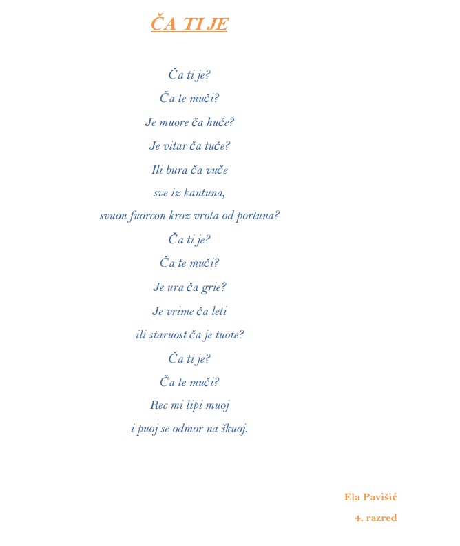 Čestitamo Eli i želimo joj još puno uspjeha u pisanju pjesama na čakavici.