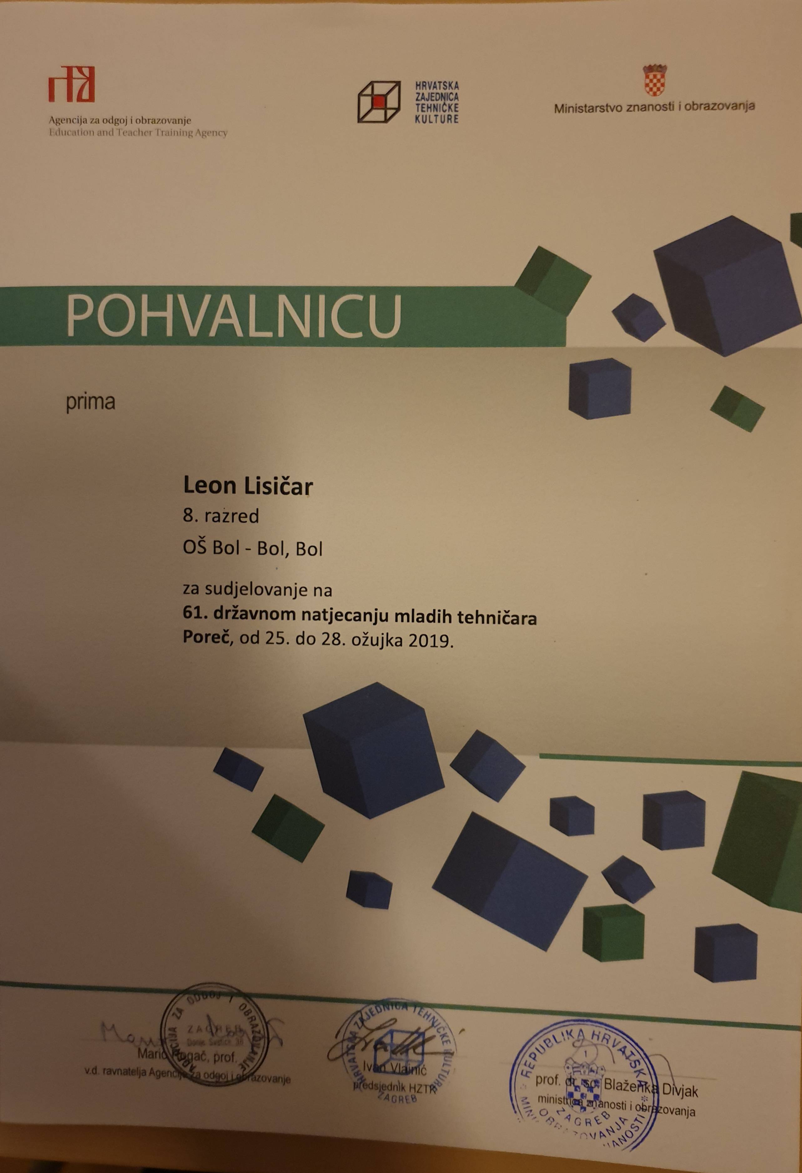 Podesiti robota i isprogramirati ga da uspješno izvršava postavljene zadatke veliki je izazov za većinu natjecatelja! Čestitke najuspješnijim učenicima i svim natjecateljima, a posebne čestitke našem učeniku Leonu Lisičaru koji se među jakom konkurencijom do samoga kraja uspješno nosio sa izazovima natjecanja i osvojio izvrsno 6. mjesto.
