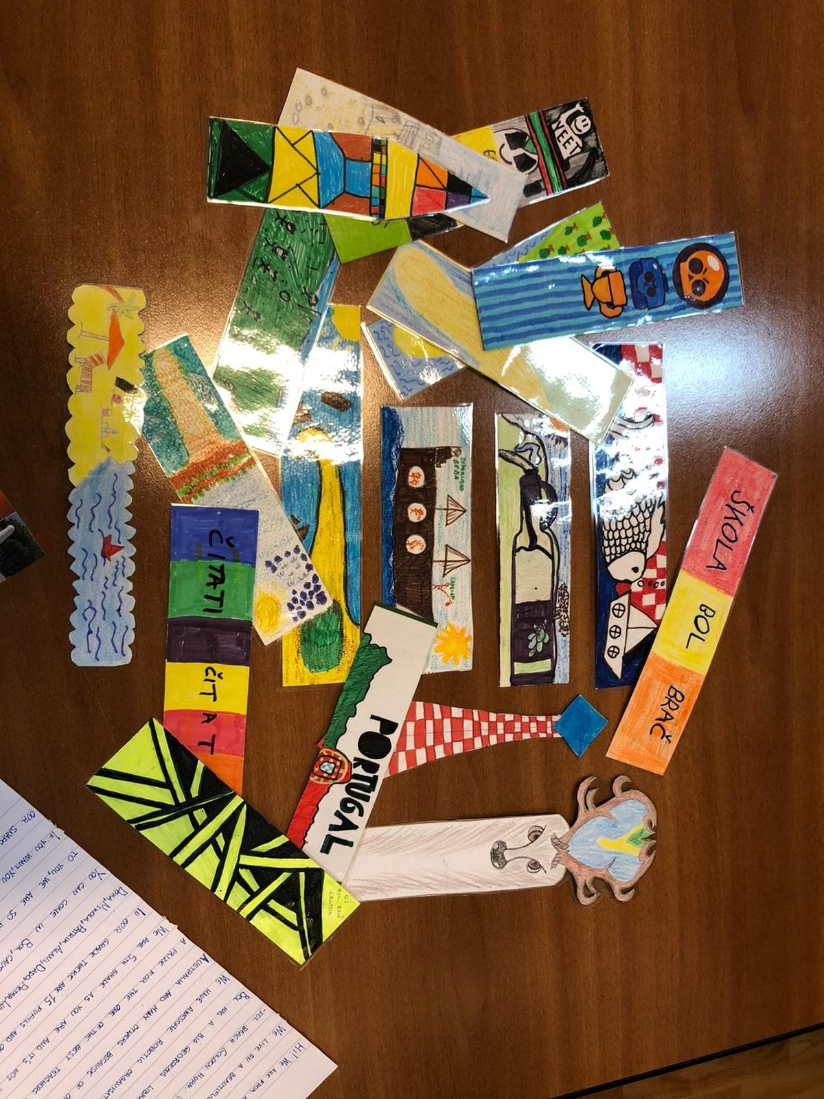 Ove godine naša škola, točnije učenici petog razreda sa svojom razrednicom i knjižničarkom sudjeluju u Međunarodnom projektu razmjene straničnika „The ISLM bookmark exchange”. Projekt je to Međunarodne udruge školskih knjižničara (IASL), u kojem koordinatori projekta uparuju prijavljene škole za razmjenu straničnika. Mi smo za partnera dobili školu iz Portugala. Nakon što su učenici upoznati s time što je straničnik i kako ga izraditi te nakon što su saznali neke zanimljivosti o Portugalu i školi partneru koju su dobili, tijekom mjeseca listopada izrađivali su svoje straničnike. Straničnike smo zajedno s pismom i razglednicom poslali na adresu škole, a još s nestrpljenjem očekujemo da nama dođe pošta iz Portugala. U dogovorima smo i oko daljnje suradnje.