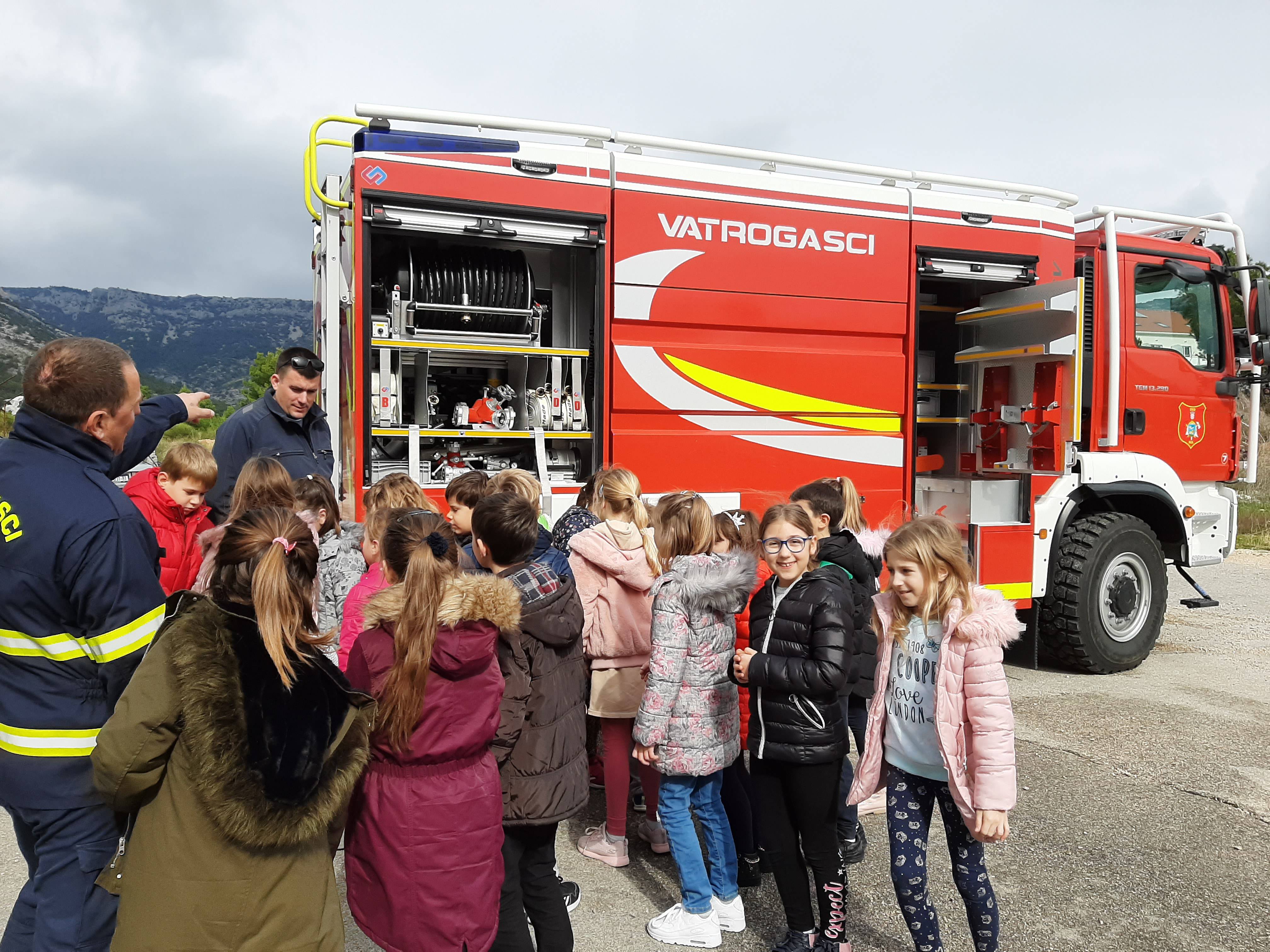Učenici 2. razreda zajedno sa svojom učiteljicom danas su posjetili Vatrogasni dom u Bolu. Dočekali su nas Stipe Marinković i Toma Stipičić. Upoznali su djecu s osnovama vatrogastva, kacigama, zaštitnim odijelima, maskama, bocama za zrak, vatrogasnim aparatima, škarama za rezanje metala, pravilima gašenja vatre i hrabrošću u spašavanju ljudskih života. Posebno su i oni sami bili ponosni na novo vatrogasno vozilo koje su pokazali s osobitom strašću. Djeca su bila jako zainteresirana. Odgovorali su na postavljena pitanja i isto tako pitali što ih zanima.