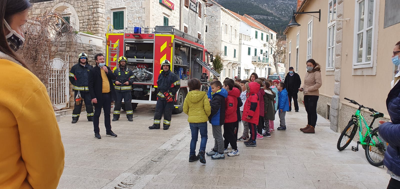 Uvodnu riječ o situacijama potresa održao je ravnatelj škole, a nakon njega su vatrogasci pojasnili što podrazumijeva njihov posao te su učenicima pokazali vatrogasnu opremu na vatrogasnom vozilu.