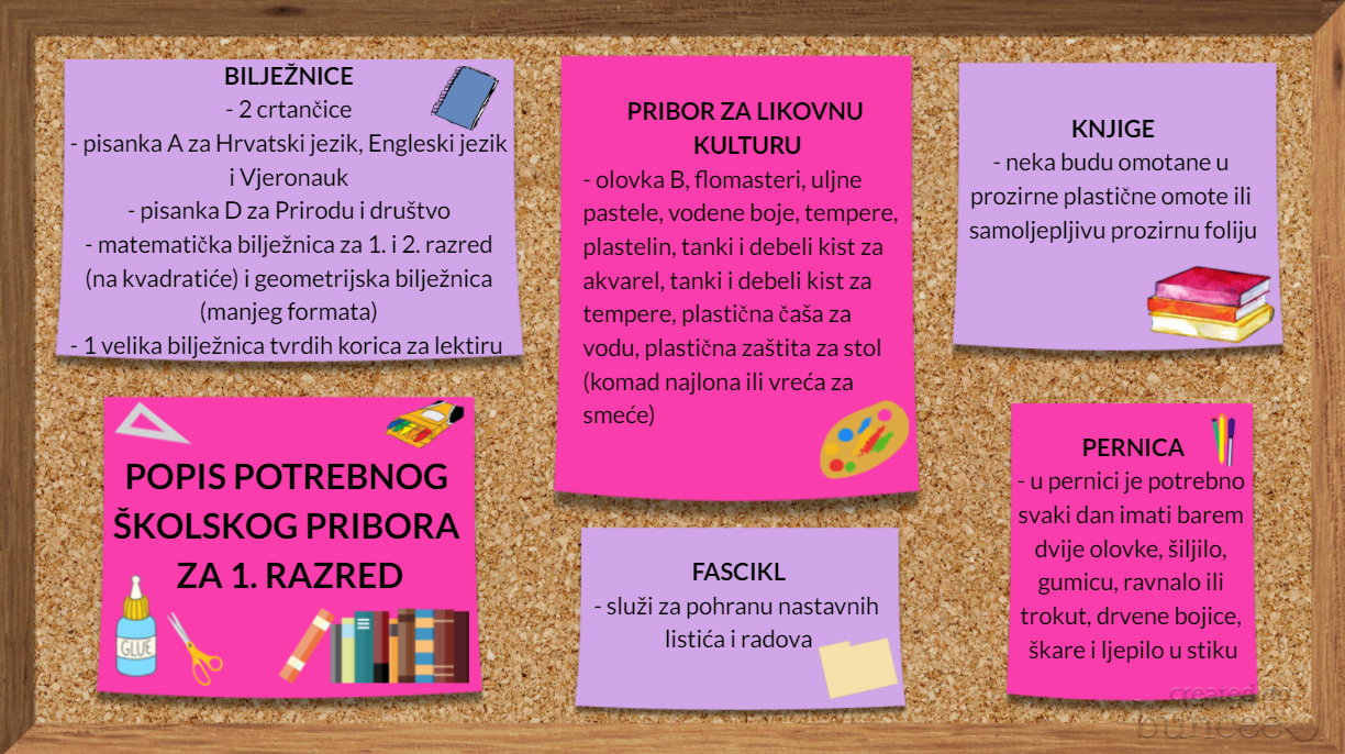 u nastavku se nalazi popis potrebnog školskog pribora za 1. razred.