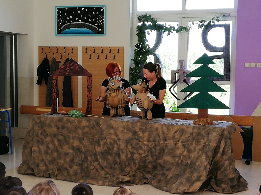 U srijedu, 25.4., svi su učenici razredne nastave gledali kazališnu predstavu "Dva ježa" u produkciji kazališne družine "Putujuće kazalište" iz Osijeka.