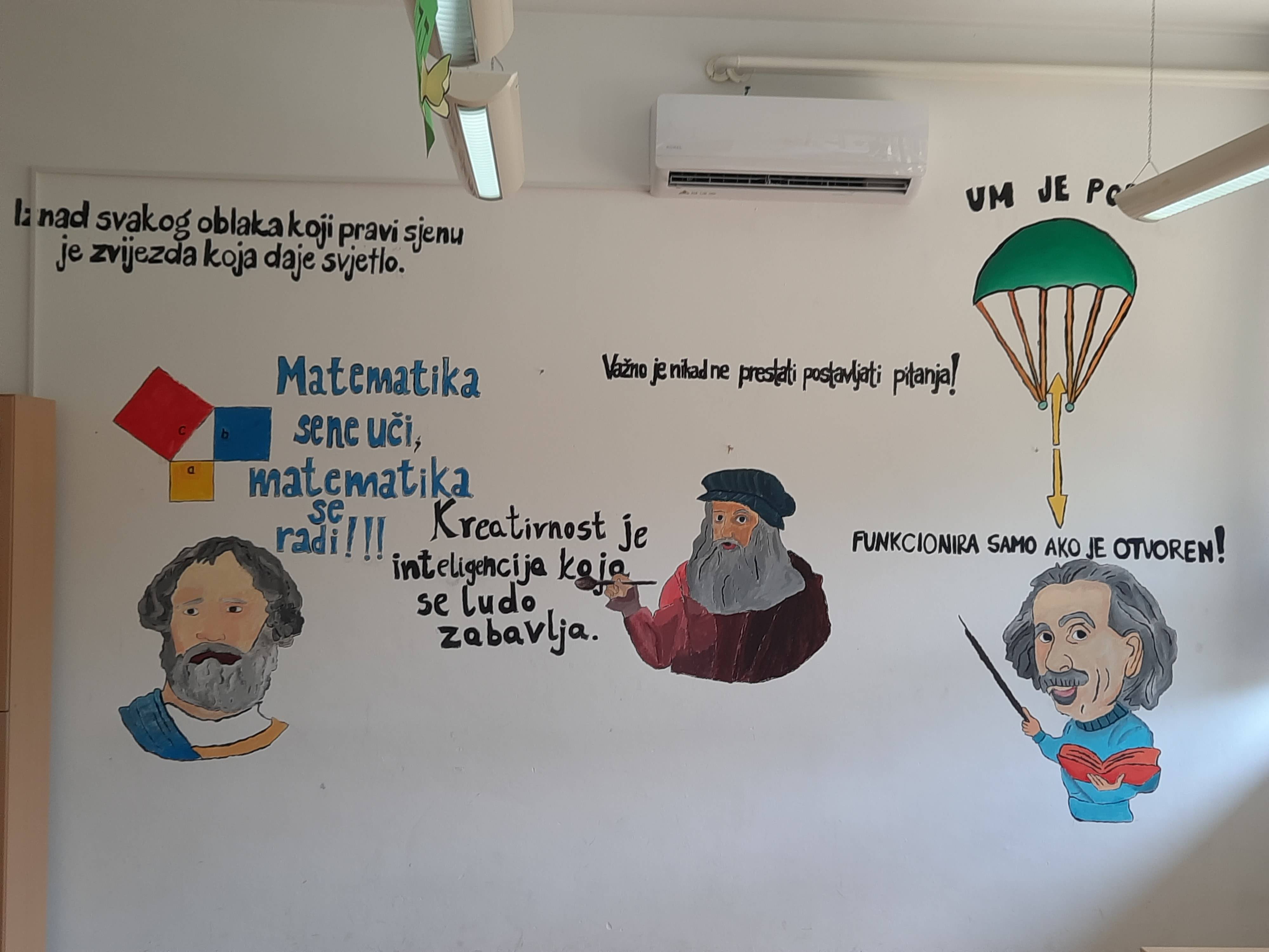 Učenici su na zidu učionice 5. razreda oslikali portrete slikara, arhitekta i izumitelja Leonarda da Vancija, fizičara Alberta Einsteina i matematičara Pitagore te na zidu ispisali njihove najpoznatije misli i ideje koje će ih potaknuti na razmišljanje i stvaranje novih ideja.