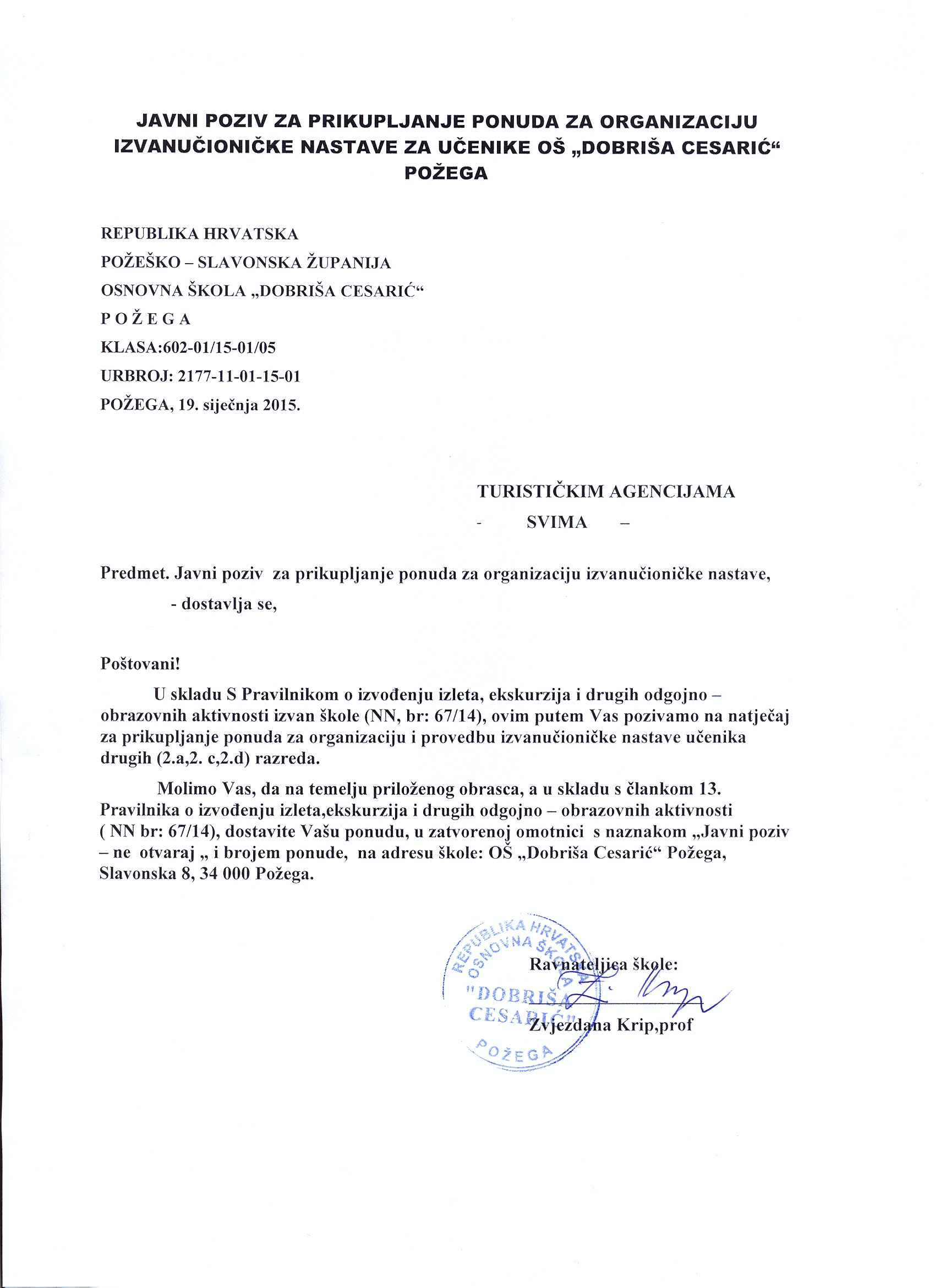 VIŠEDNEVNA EKSKURZIJA, 7. RAZRED- obrazac poziva