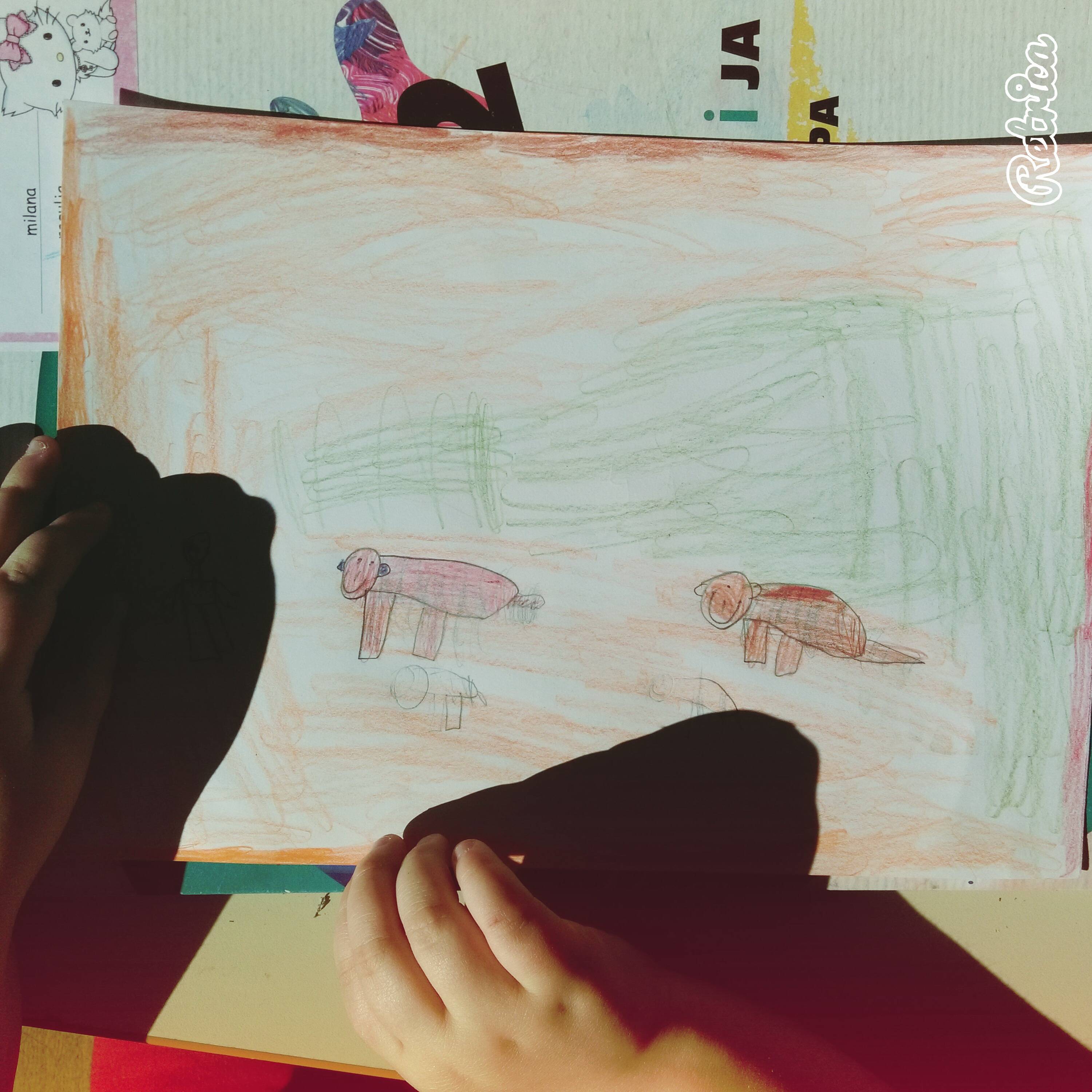 Učenici 1. razreda nisu znali za iznenađenje koje im je pripremila njihova učiteljica Vesna Kunstl Vuić i bili su ugodno iznenađeni kad su vidjeli pse. U početku su se djeca igrala s psićima, a onda su imali uobičajen nastavni sat dok su dva psića veselo skakutala oko njih. Primijetili smo da su uživali u svakom dijelu tog sata. Drugi su sat psići otišli, a djeca su dobila zadatak da likovno prikažu svoj doživljaj pasa. Njihove radove možete vidjeti u priloženim fotografijama.