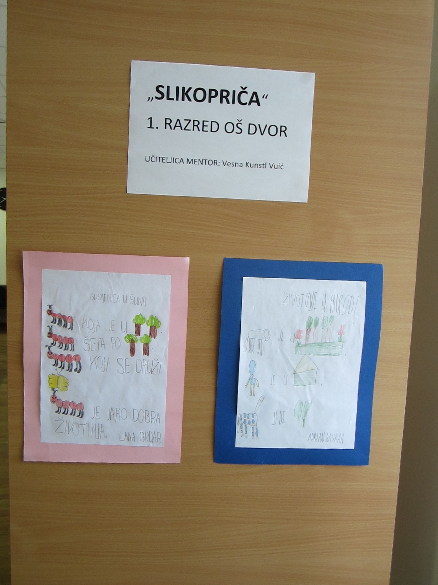U dvorskoj knjižnici i čitaonici postavljena je izložba "Slikopriče" - radovi učenika prvog razreda koje su napisali i nacrtali ponavljajući što su naučili o znakovima na kraju rečenice.
