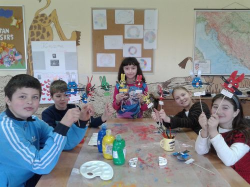 Učenici četvrtog razreda izrađivali su uskrsne zečiće, a učenici šestog razreda su bojali pisanice. Kroz radionicu učenici su pokazali svoju kreativnost, maštovitost i domišljatost. Bravo za vrijedne učenike!