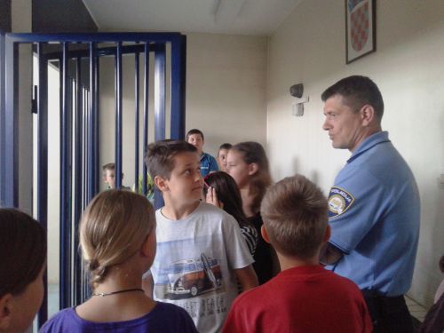 Dolaskom u policijsku postaju učenici su uz vodstvo kontakt policajca gospodina Maria i njegovih kolega krenuli u razgledavanje postaje. Šef smjene detaljno je učenicima objasnio što je posao policajaca na terenu, što sve moraju imati uz sebe, kojim se smjerovima kreću. Učenici su vidjeli i ćelije, urede u kojima se obavljaju administrativni poslovi (izrada dokumenata), a nakon toga su poslušali predavanje o prevenciji kriminaliteta. Predavanje je kod učenika potaknulo svijest o izboru pravog puta u životu u kojem nema sredstava ovisnosti i kriminaliteta.