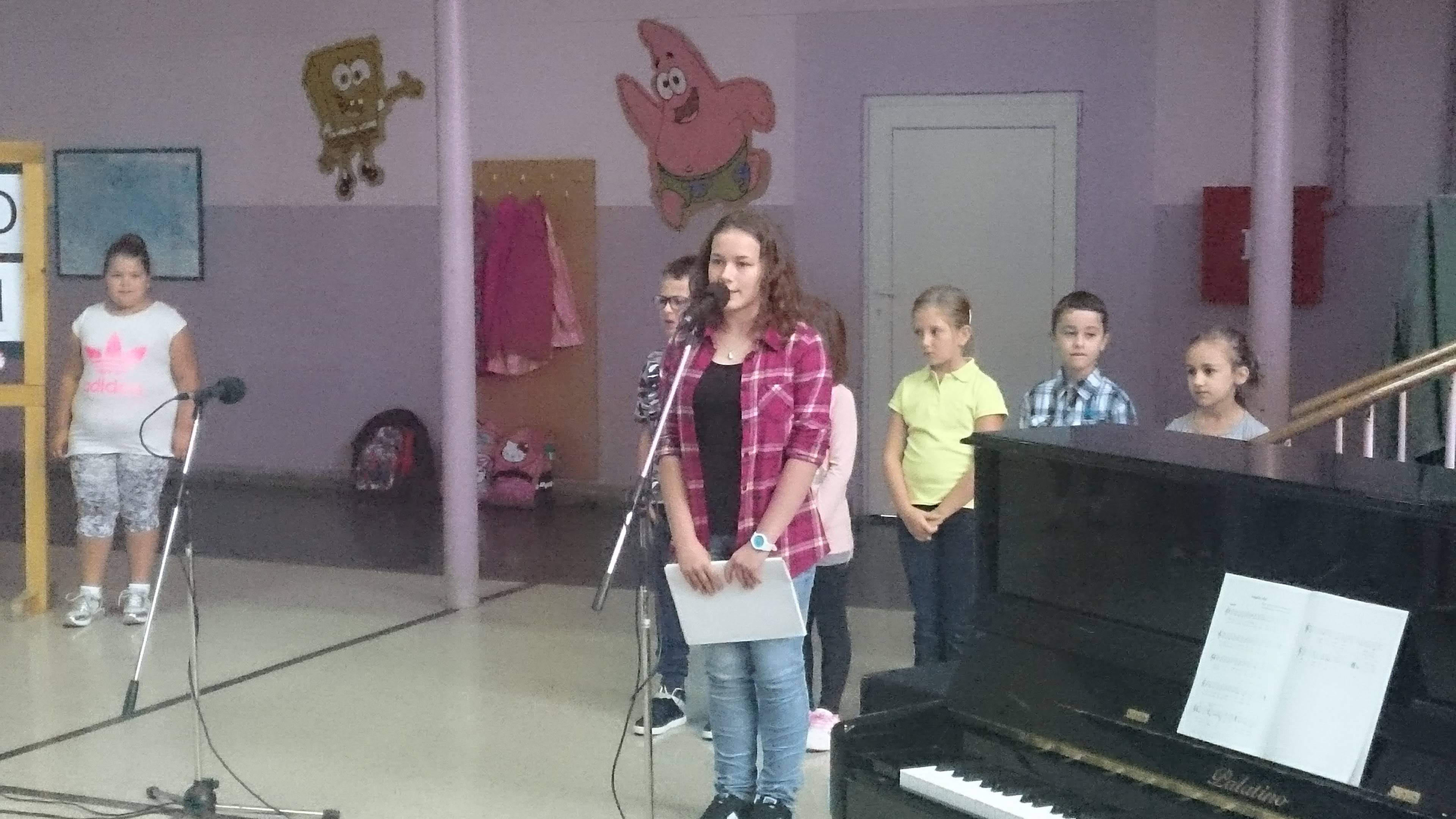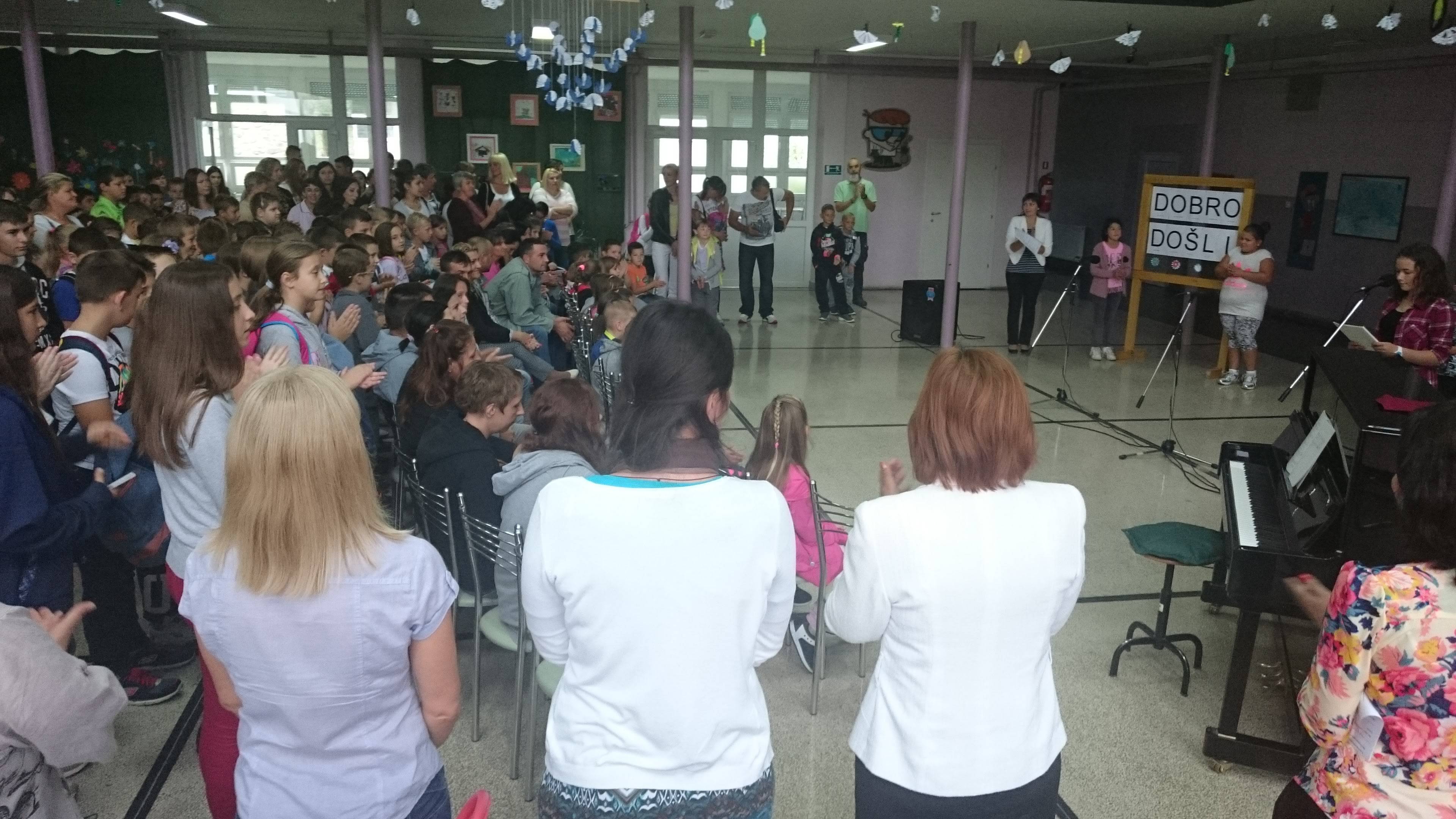 Prvi nastavni dan u ovoj školskoj godini započeo je svečanom priredbom kojom su nam učenici pokazali svoja literarna i glazbena umijeća i poželjeli dobrodošlicu prvašićima.