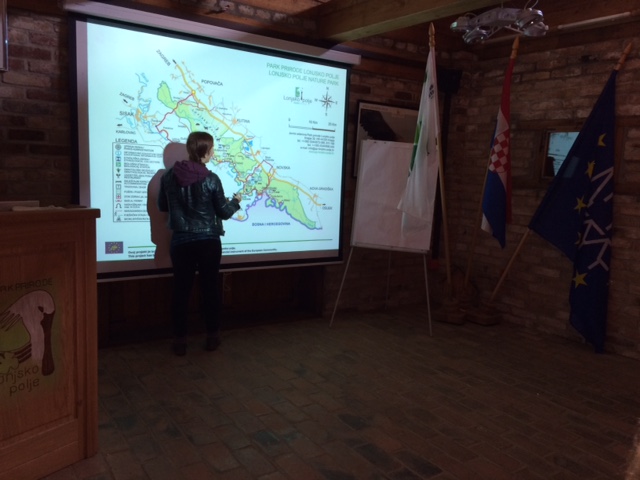 Dugo i naporno smo putovali, kada smo došli u Lonjsko polje prvo smo jeli. Nakon toga podjelili smo se u tri grupe. Prva grupa je rijesavala radne listiće, druga je išla u dvoranu gledati prezentaciju i film, a dok je treća grupa išla na vožnju brodom. Mi smo bili prva grupa i riješavali smo listiće i išli u obilazak mjesta Krapje. Gledali smo stare kuće izgrađene od hrasta lužnjaka. Bilo je jako zanimljivo. Poslije toga smo išli u dvoranu gledati prezentaciju. Prezentacija je bila jako lijepa, nakon toga išli smo nakratko u suvenirnicu i poslije na vožnju brodom. Malo je puhao vjetar pa je bilo hladnije. Kada smo završili sa vožnjom brodom autobusima smo krenuli kući. Lijepo smo se proveli u Lonjskom polju i voljeli bismo da se to opet ponovi.