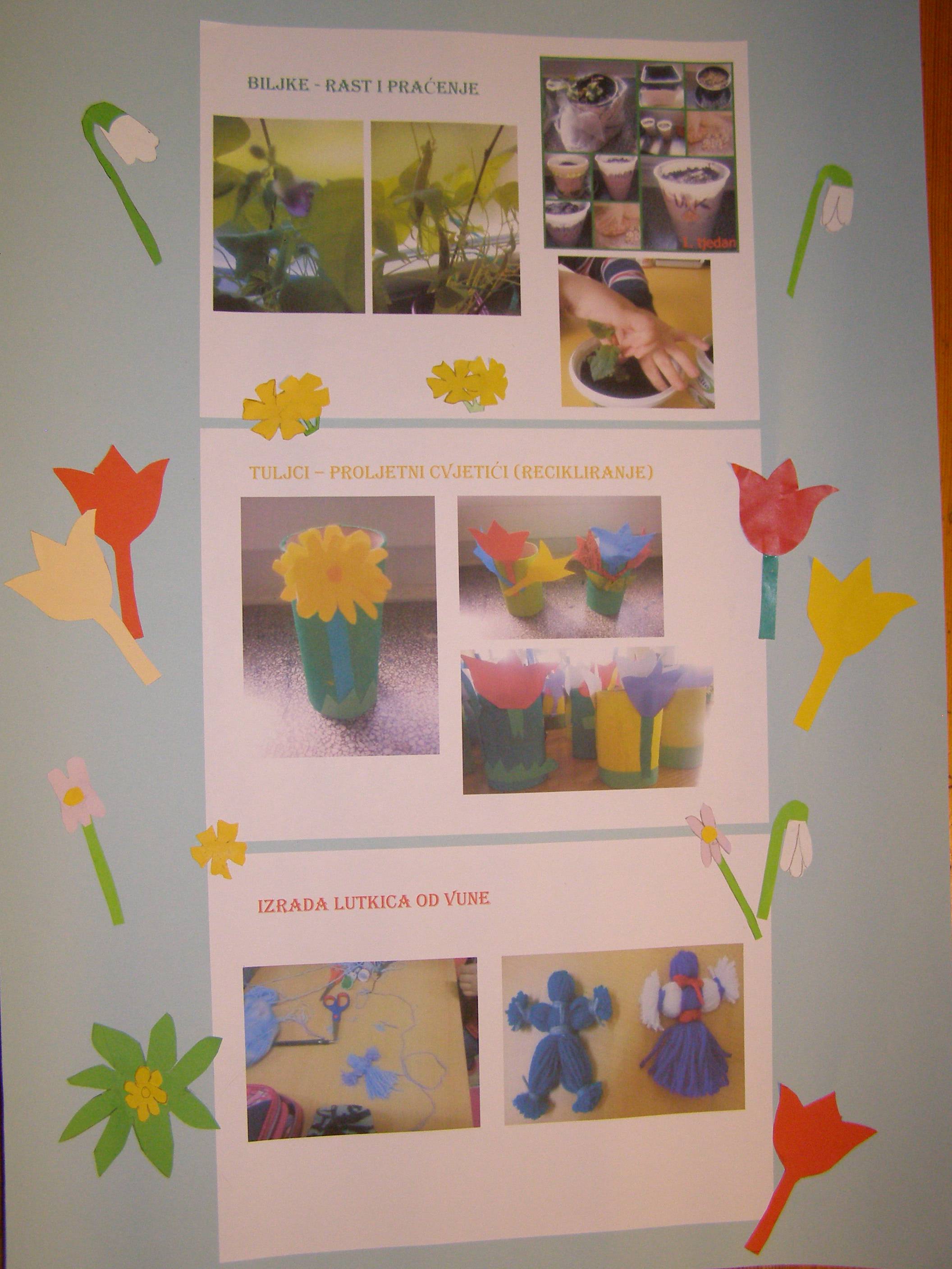 - sudjeluje u akcijama sadnje cvijeća, prati rast i razvoj biljke te stečena znanja primjenjuje u svom najbližem okolišu
