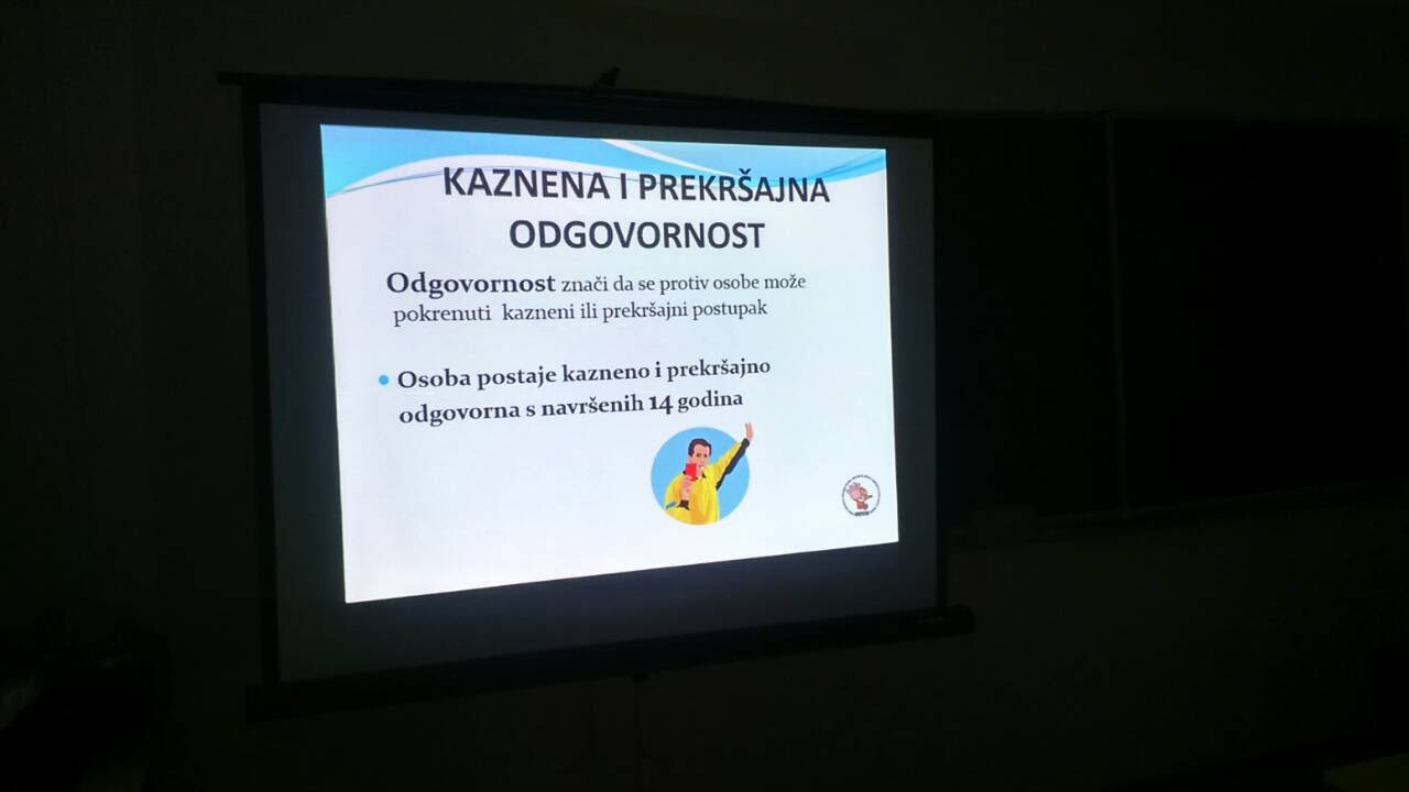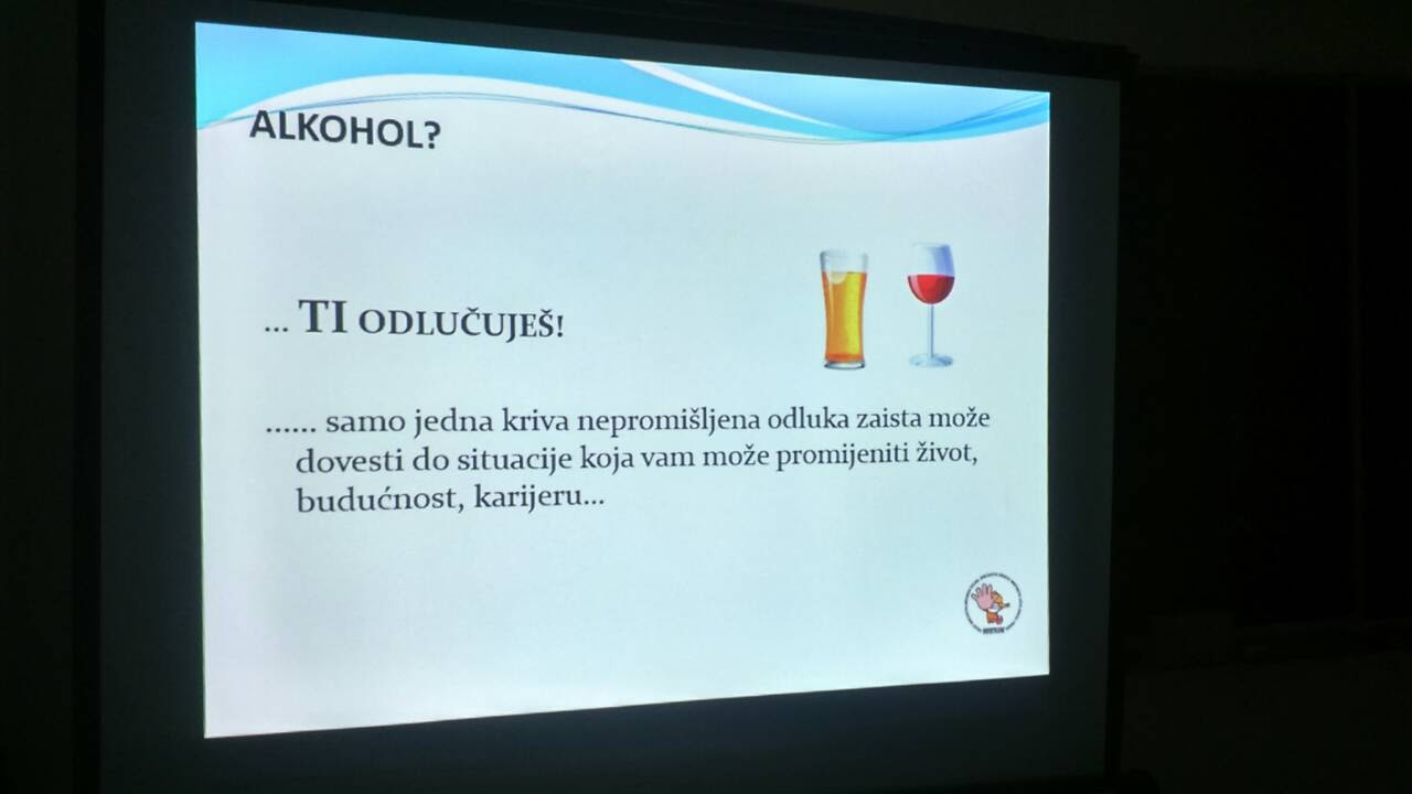 Edukaciju učenika osmog razreda, ovisnost o alkoholu, proveli su policijski službenici Policijske uprave sisačko-moslavačke, Slavko Jerković i Srećko Pejnović, 15. studenoga 2017.godine.