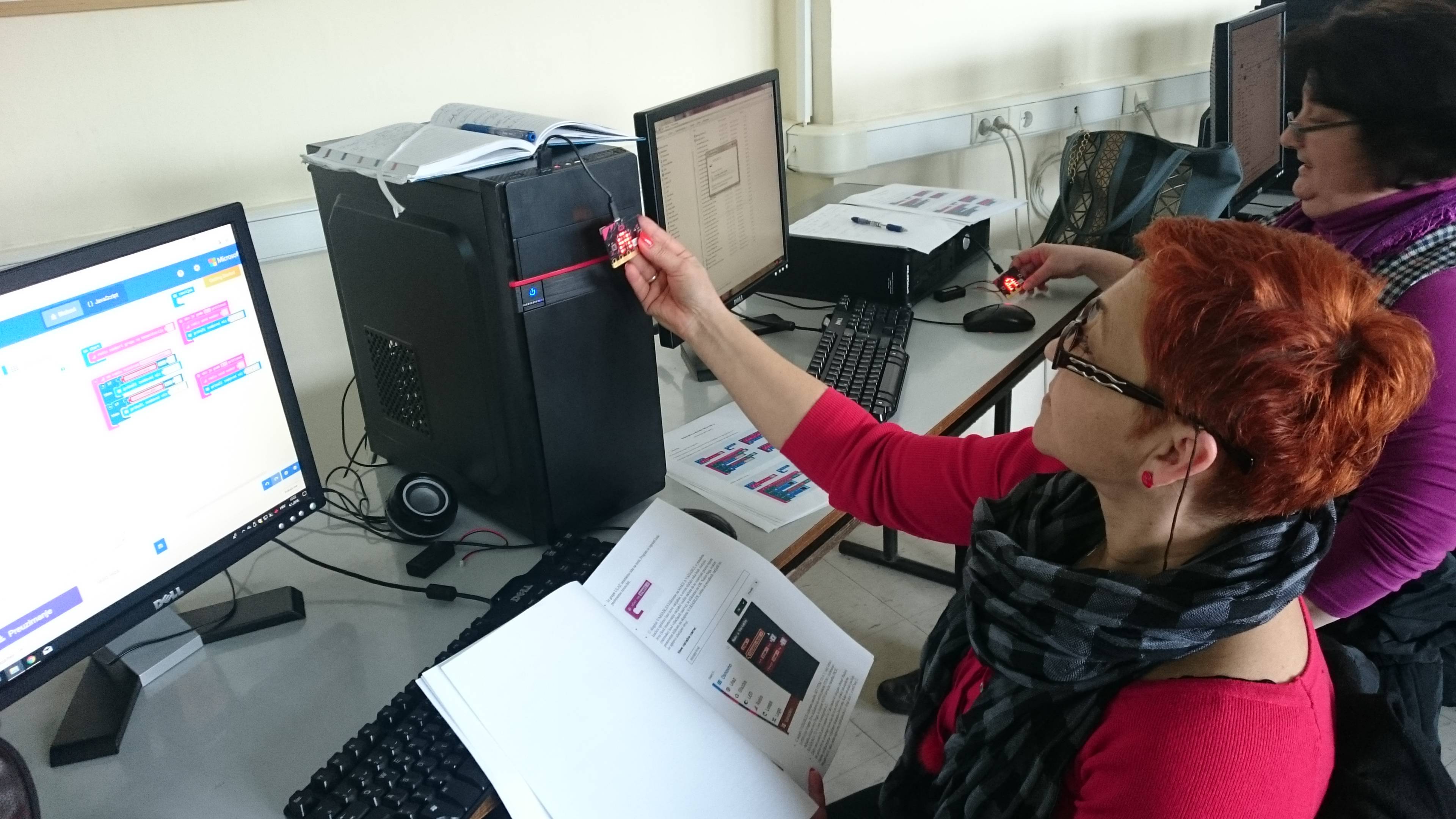 Na micro:bit radionici učitelji su upoznali kako micro:bitovi mogu međusobno komunicirati, te primjere uporabe micro:bita u svom predmetu.