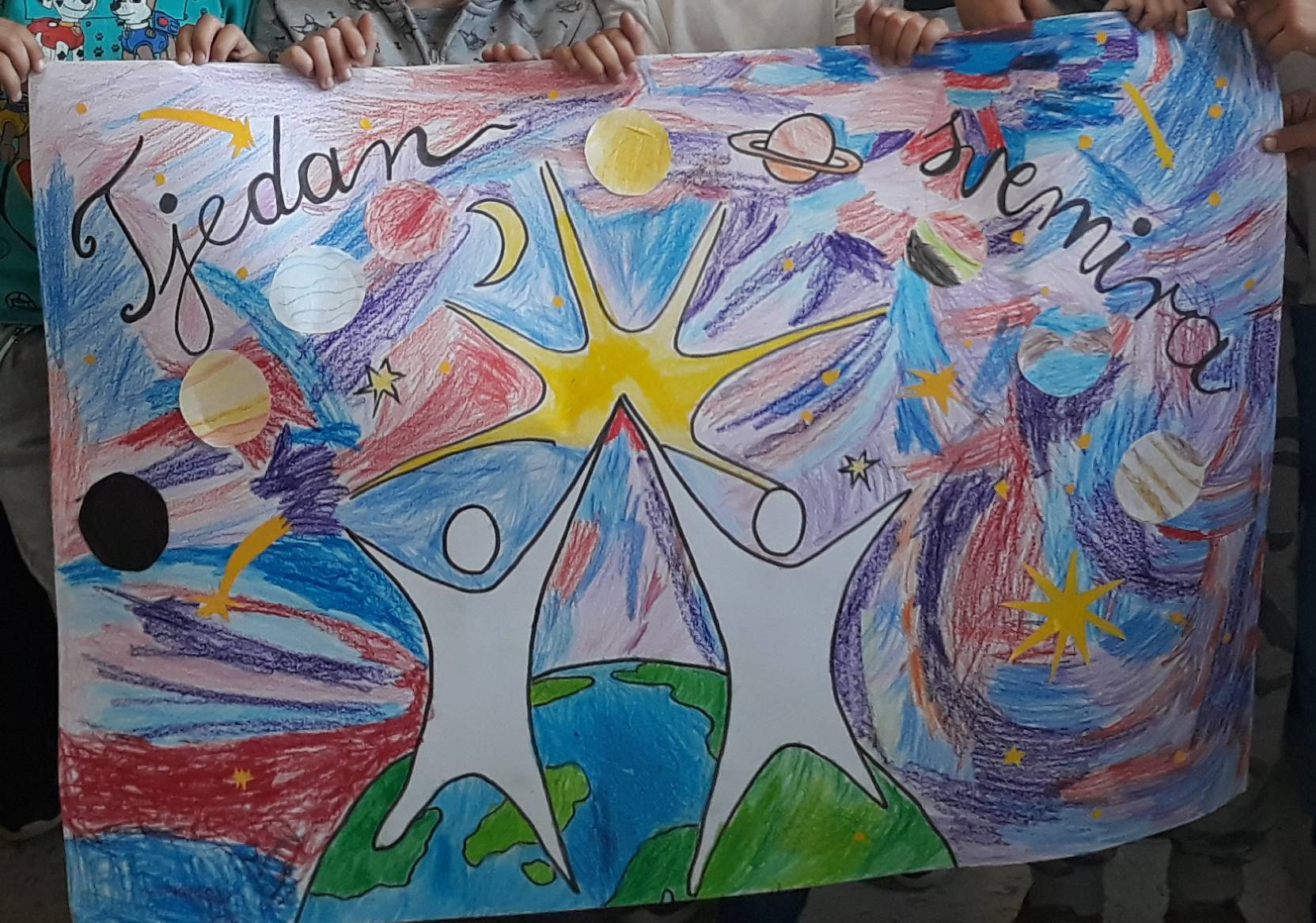 Učenici su putovali svemirom gledajući prezentaciju, kratke filmske isječke, listajući Dječju ilustriranu enciklopediju Zvijezde i planeti, Čovjek i svemir – časopis Zagrebačke zvjezdarnice. Saznali smo puno toga o svemiru, galaksijama, zvijezdama, crnim rupama, zviježđu, Sunčevom sustavu, Suncu, planetima, satelitima, kometima, asteroidima. Slikali smo se kao mali astronauti i zajedničkim snagama izradili plakat.