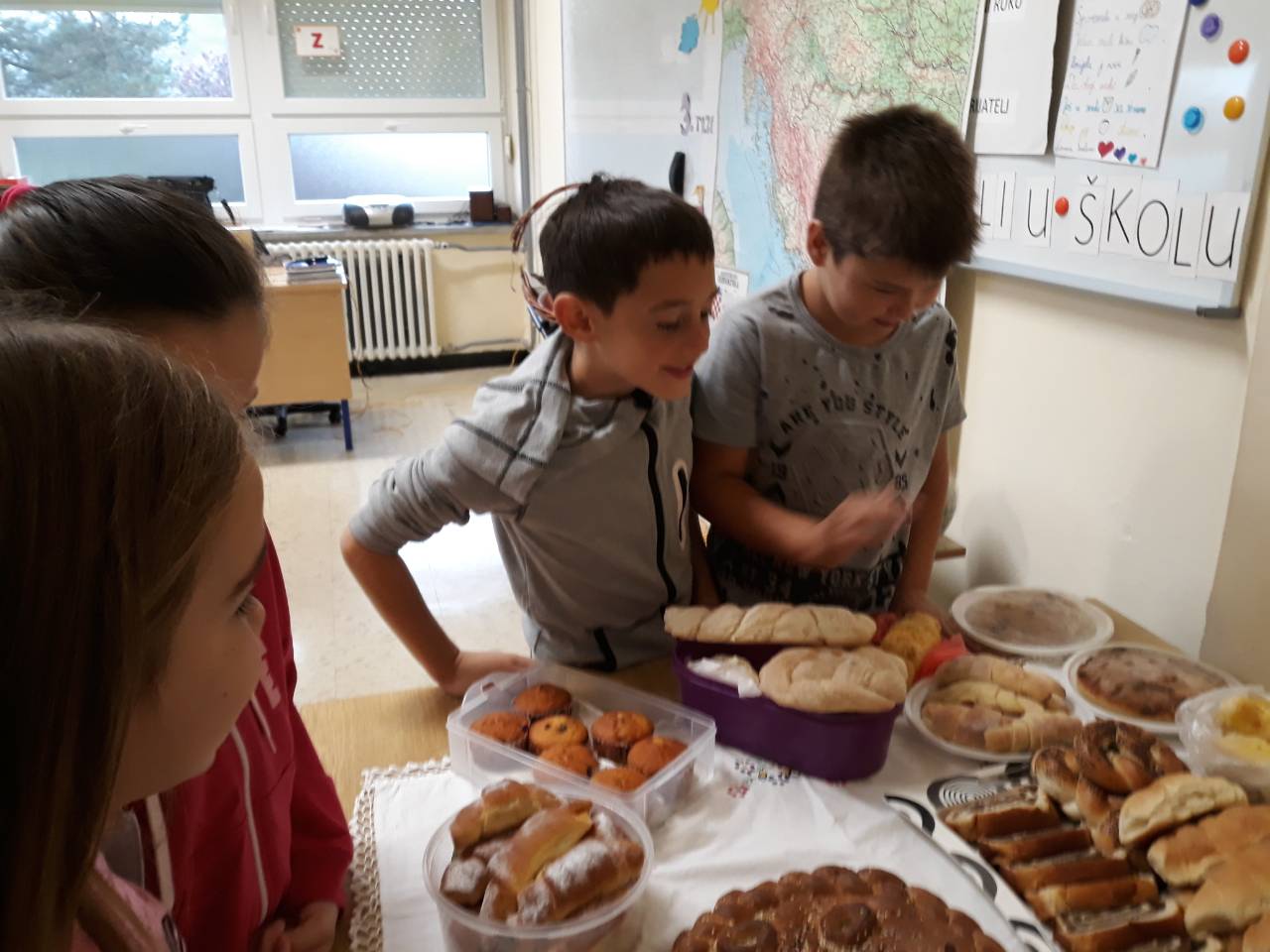 Svi razredni odjeli su u svojim učionicama izložili krušne proizvode, kolače i plodove jeseni, a na kraju je uslijedilo zajedničko blagovanje raznih kiflica, kolača, peciva i kruha. Hvala našim roditeljima, bakama i svima koji su pridonijeli našoj svečanosti.