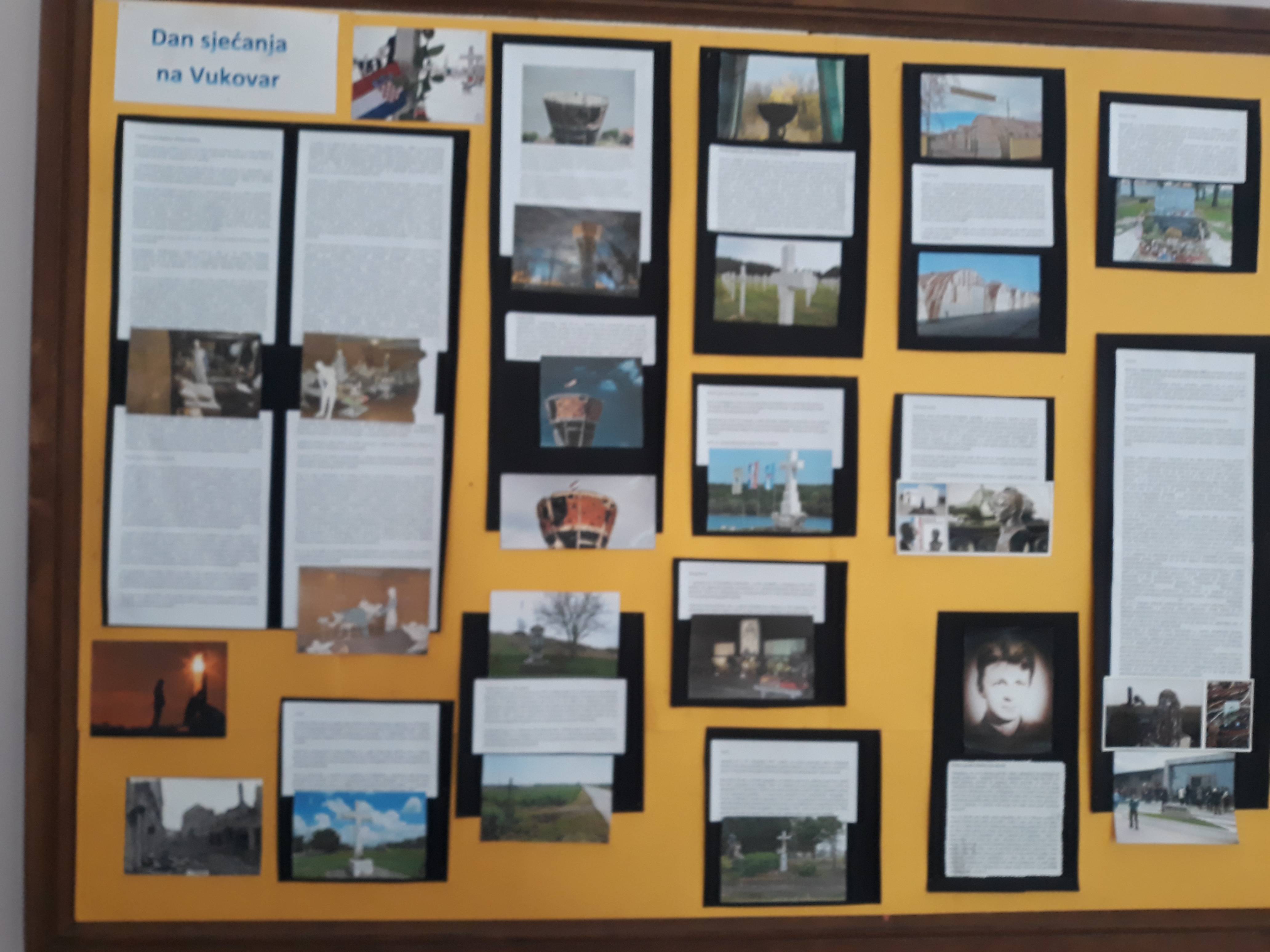 U holu škole bila je postavljena izložba s plakatima o gradu heroju. Plakate su postavili učenici predmetne nastave pod mentorstvom učiteljice povijesti Matee Sokač Terešak.  Ispod plakata bile su upaljene svijeće. Za učenike razredne nastave održan je integrirani nastavni dan. Toga dana sve je bilo u znaku Vukovara, od likovnih radova, literarnih pjesama do glazbenih uradaka. Obilježavajući Dan sjećanja učenici i učitelji su spoznali važnost mira i odali su počast svim vukovarskim i hrvatskim junacima koji su svoje živote položili iz ljubavi prema svojoj domovini.