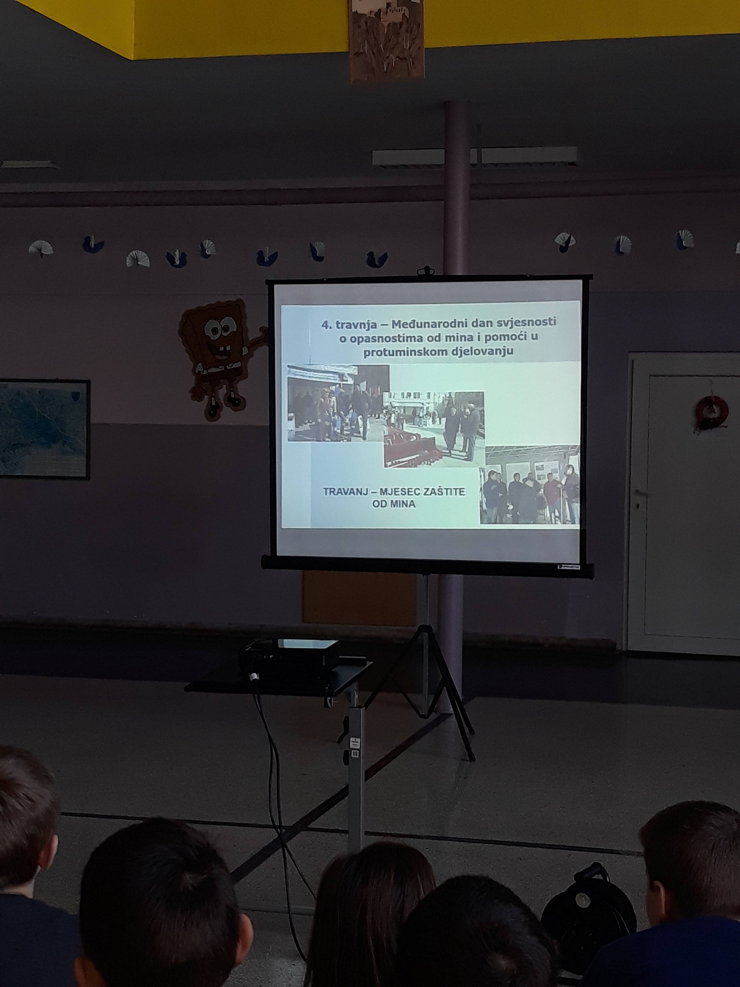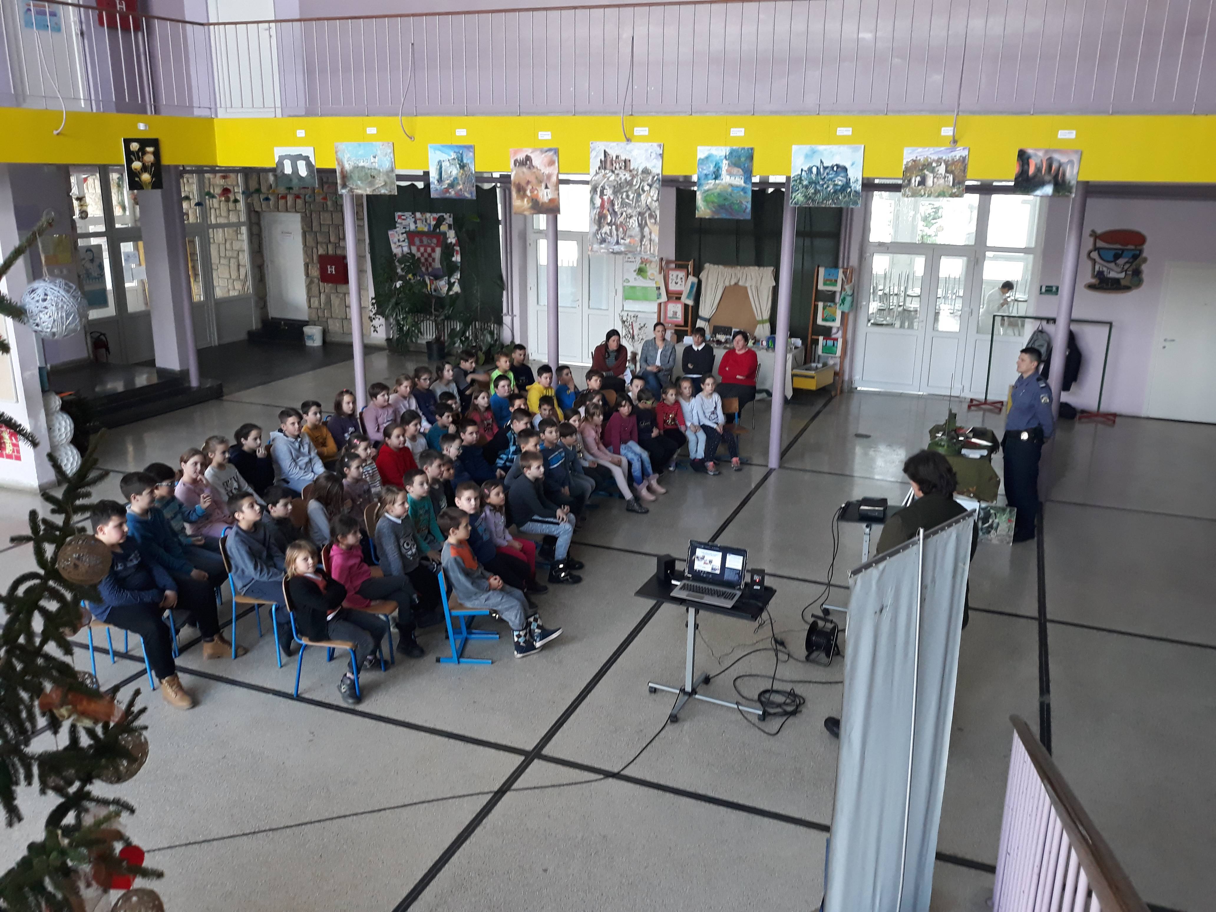 Učenici od prvog do četvrtog razreda prisustvovali su predavanju u sklopu akcije „Mir I dobro“ koju provodi Ministarstvo unutarnjih poslova, a koju su za njih održali kontakt policajac Mario Škledar iz PP Dvor  i gospođa Marta Kovačić iz Hrvatskog centra za razminiranje koja je održala poučno i zanimljivo predavanje o minama, minskim područjima i kako postupiti ukoliko naiđemo na mine.
