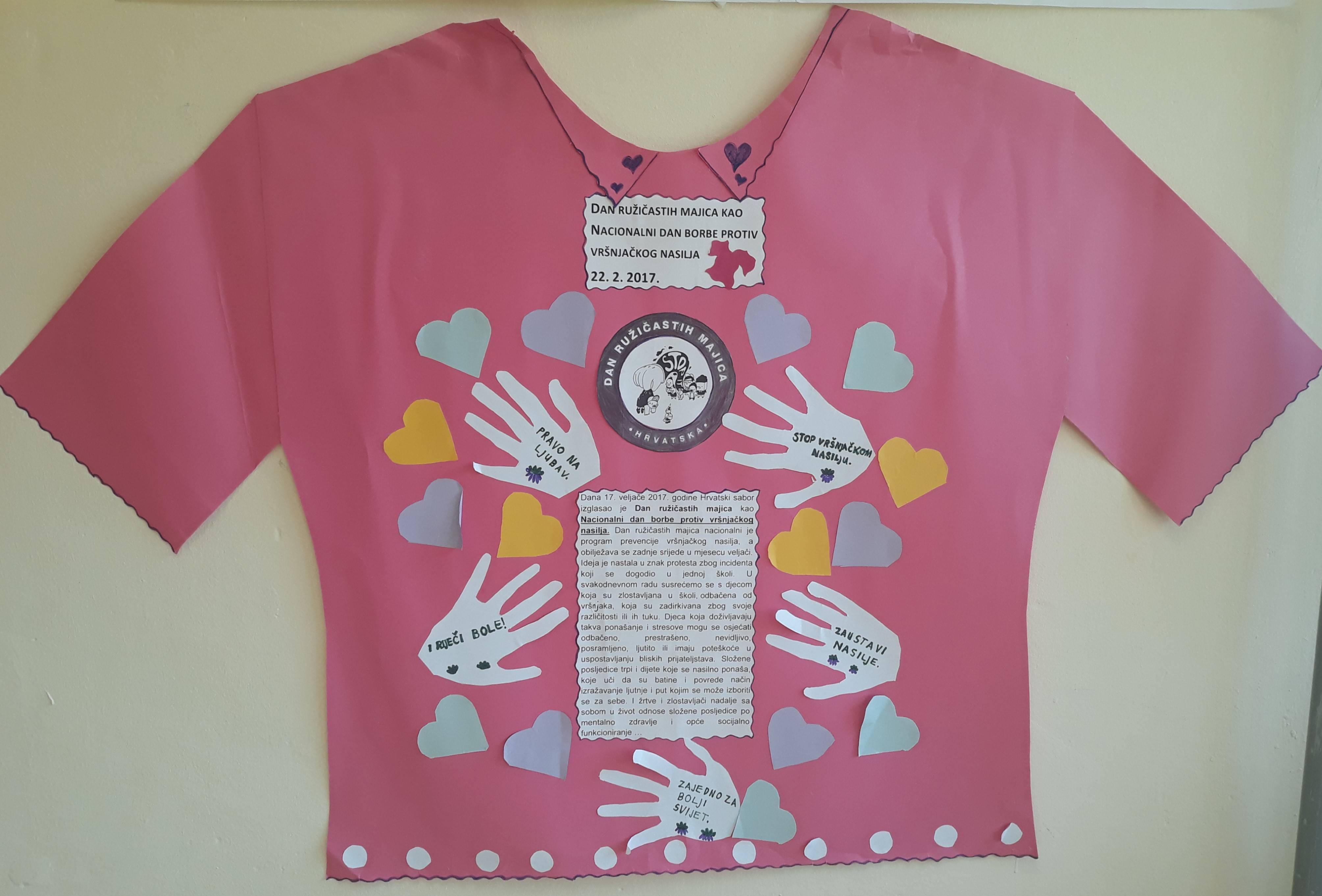 Učenici i djelatnici škole u znak podrške obukli su ružičaste majice i time poslali poruku "Stop - nasilje prestaje ovdje" s ciljem kako neće tolerirati vršnjačko nasilje u svojoj sredini.