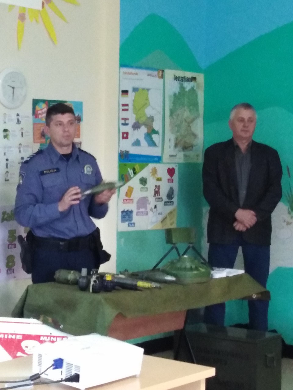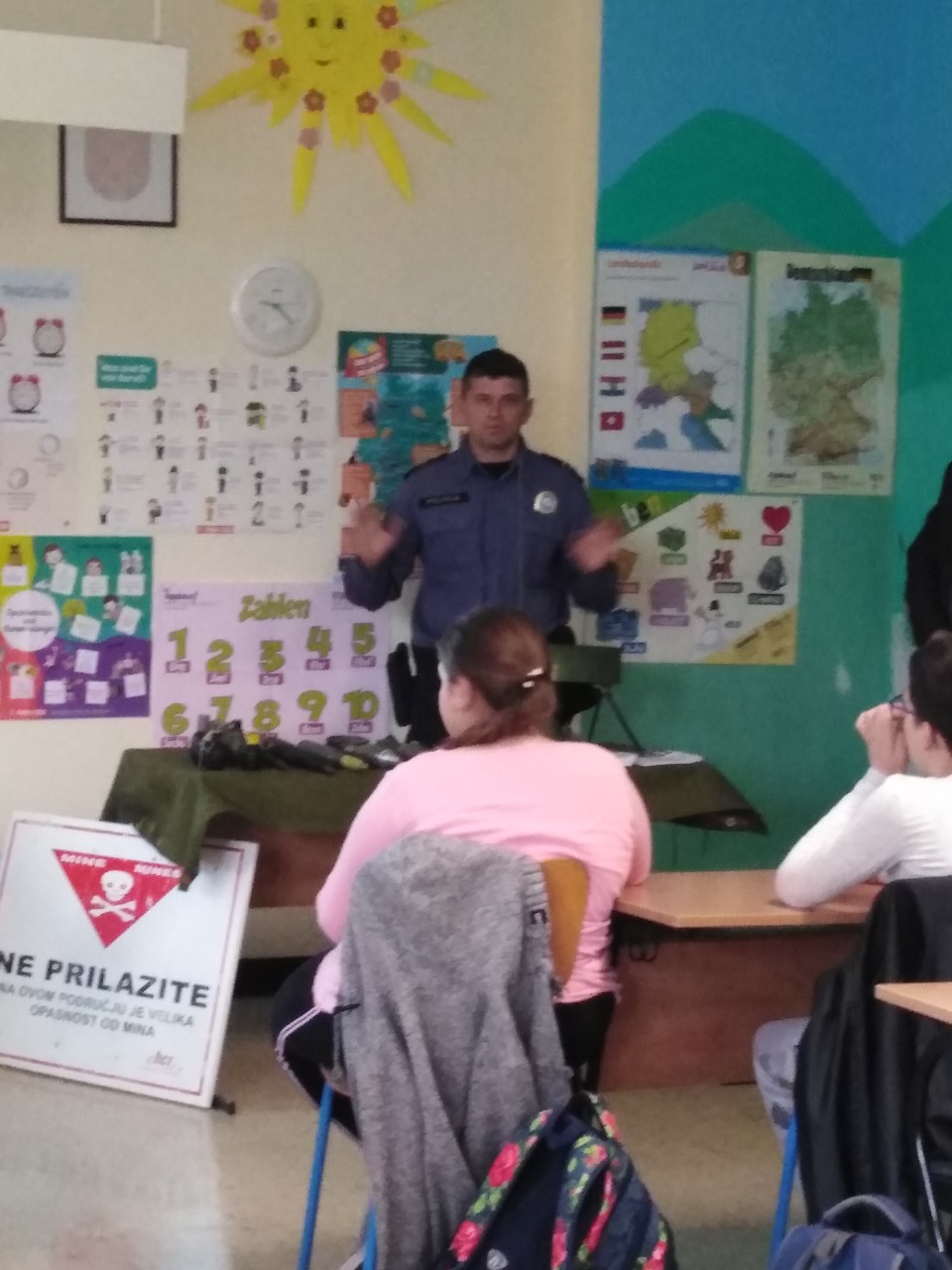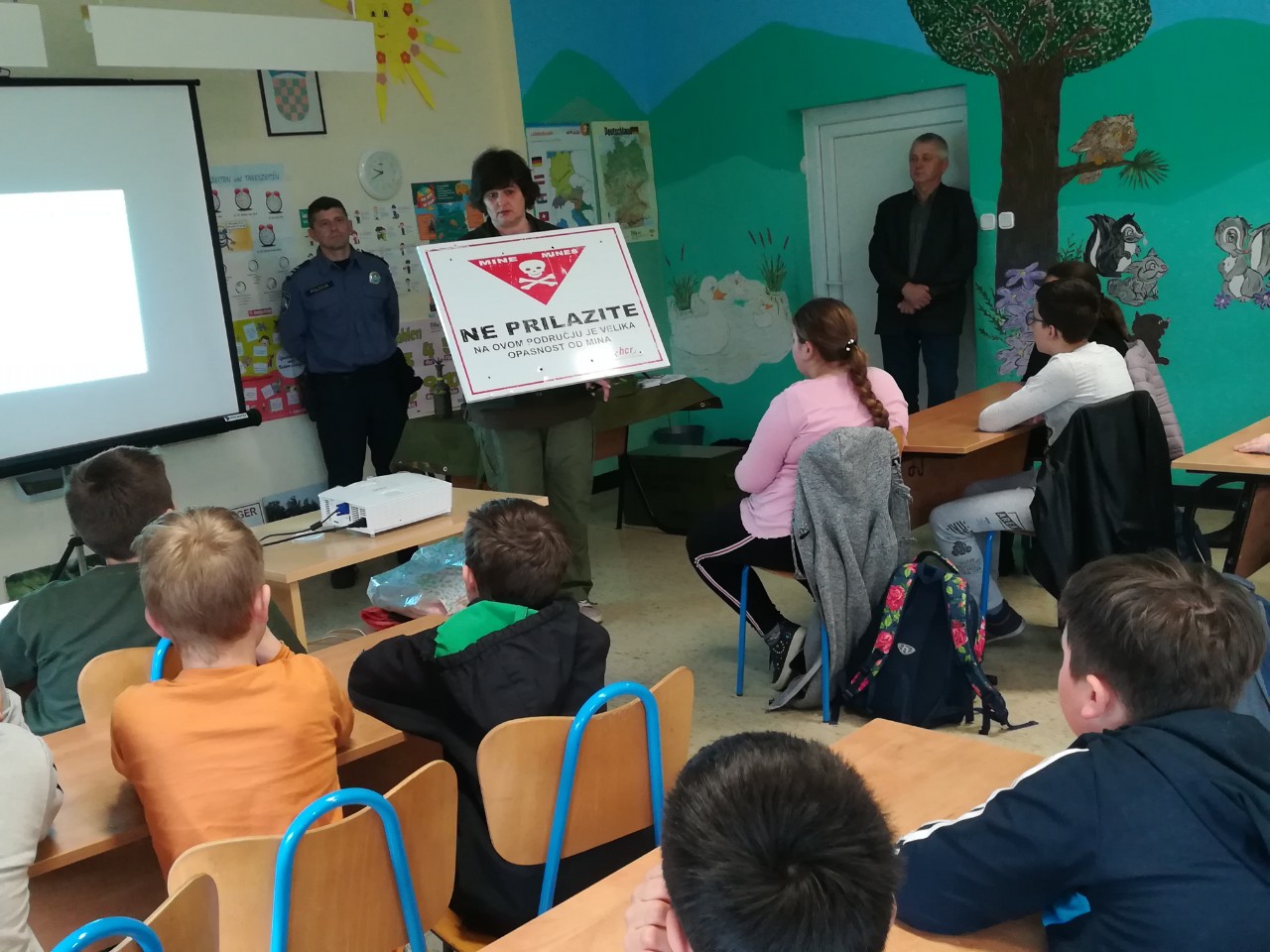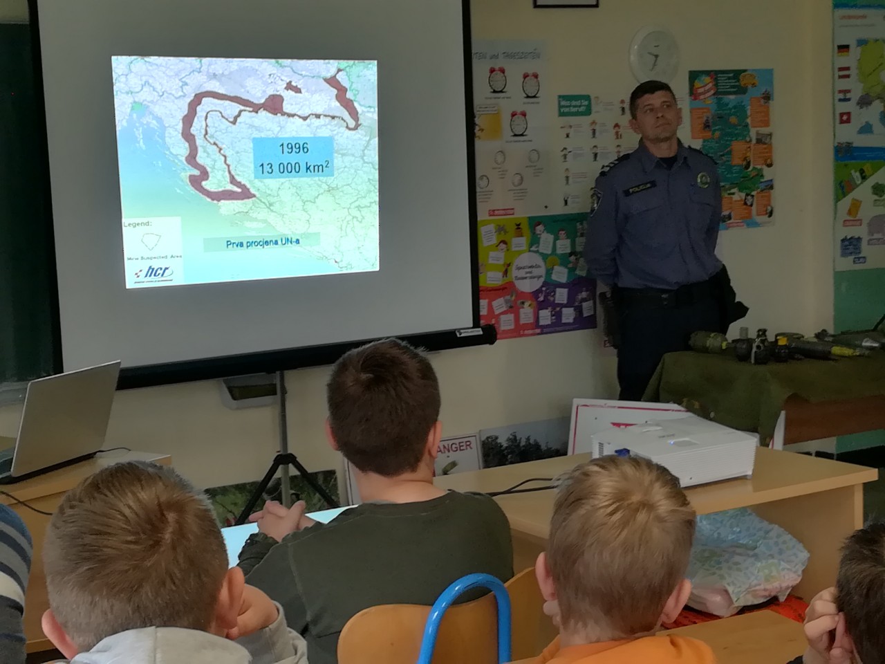 9. travnja 2019. godine učenici 5-ih razreda naše škole imali su predavanje na temu “Edukacija o minskoj opasnosti“.
