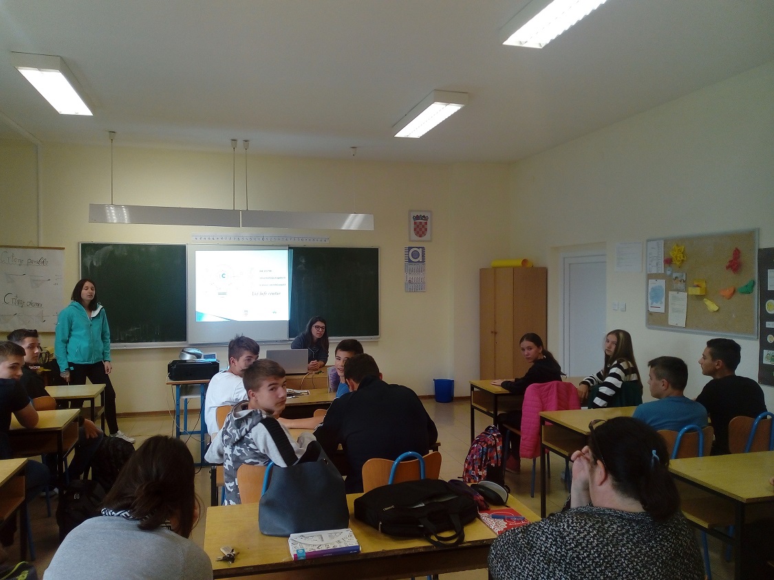 Učenici 8.a i 8.b razreda, sa svojim razrednicama i pedagoginjom, prisustvovali su predavanju članova udruge IKS iz Perinje na temu odabira srednje škole. Projekt udruge IKS realiziran je pod pokroviteljstvom Ministarstva za demografiju, obitelj, mlade i socijalnu politiku Rrepublike Hrvatske. Učenici su detaljno upoznati sa e-upisima, vrstama škola i upisima u učeničke domove. Također su imali prilike na engleskom jeziku komunicirati sa studenticom iz Rumunjske koja u okviru razmjene studenata sudjeluje u radu udruge.