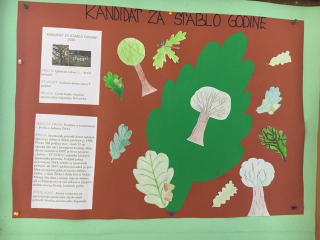 Javna ustanova za upravljanje zaštićenim dijelovima prirode Sisačko-moslavačke županije prijavila je za natjecanje Hrvatsko stablo godine 2020. posebno stablo u Sisku, hrast lužnjak Julius – Žirko.