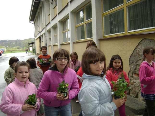 Nekoliko dana ranije naši najmlađi učenici, članovi izvannastavne aktivnosti istraživači prirode, pobrinuli su se za cvijeće oko škole.