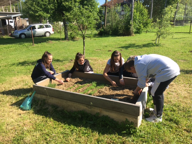 Slijedila je sjetva sjemenki peršina, kopra, vlasca, mente i origana te sadnice ružmarina. Učenici po potrebi vrijedno čiste gredicu od korova, a najesen se nadamo i upotrebi začinskog bilja u našoj školskoj kuhinji.