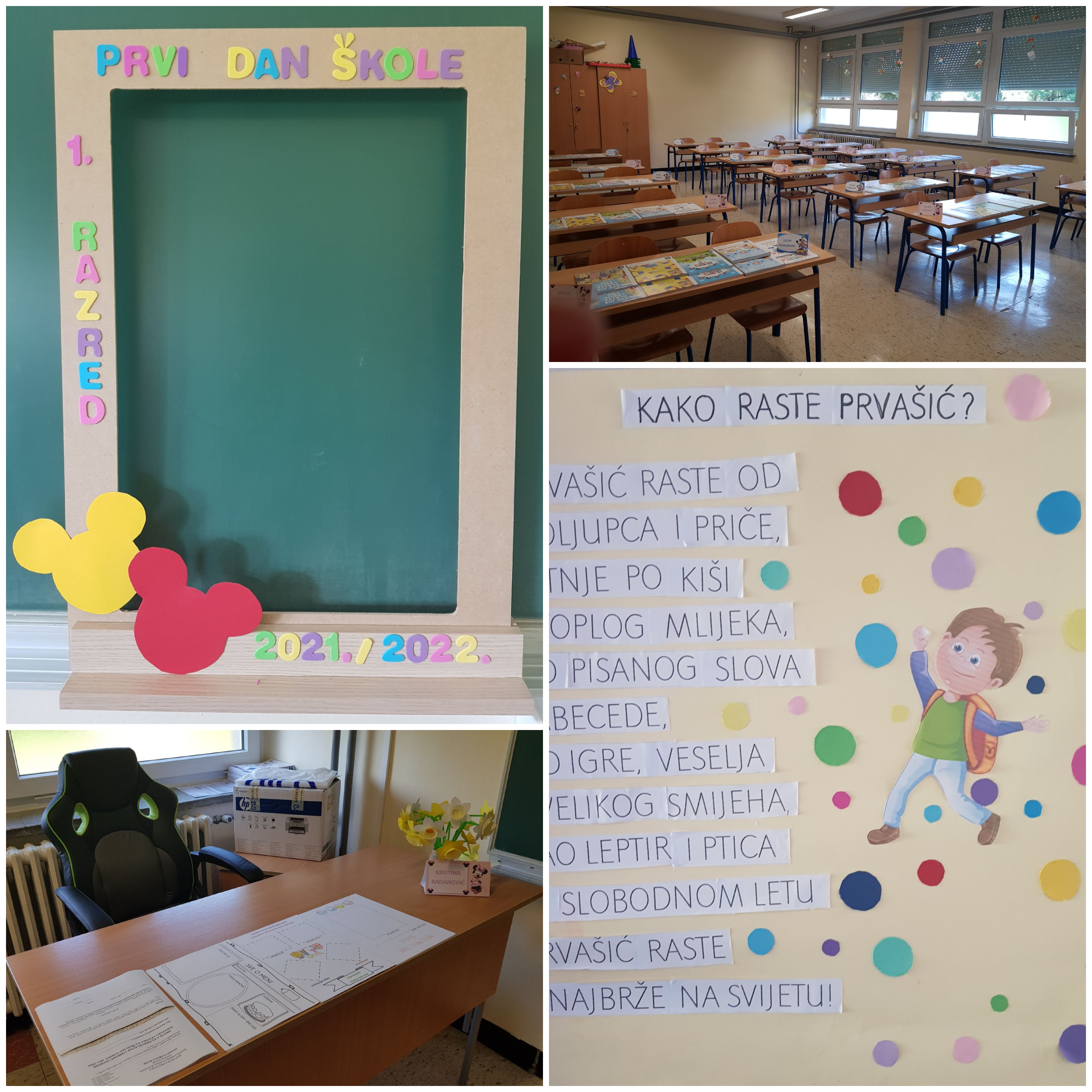 Učenike su na školskim klupama dočekali novi udžbenici i mali poklon dobrodošlice. Učiteljica im je pripremila dvije pjesmice o prvašićima koje su ih uvele u školski svijet. Toga dana mali đaci su crtali, bojali i pjevali.