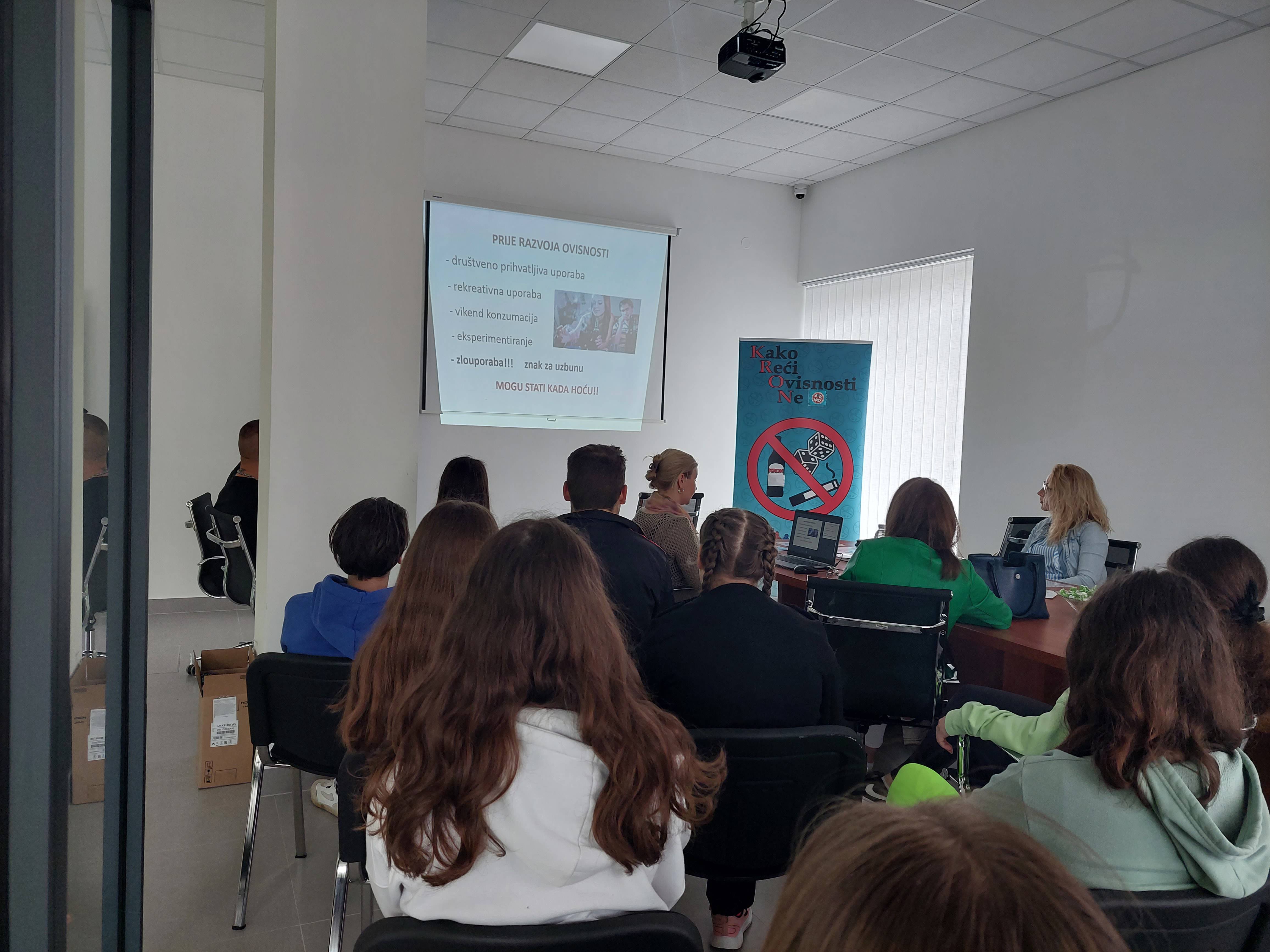 Izuzetno korisno i poučno predavanje je održala specijalistica psihijatrije Aleksandra Kraguljac iz Odsjeka za mentalno zdravlje, prevenciju i izvanbolničko liječenje ovisnosti Zavoda za javno zdravstvo Sisačko – moslavačke županije. Ponovili smo zajedno vrste ovisnosti, posljedice uzimanja sredstava ovisnosti, načine liječenja te kome se možemo obratiti za stručni savjet i pomoć. Učenici su dobili i kontakt brojeve telefona stručne službe zadužene u našoj županiji za prevenciju i izvanbolničko liječenje.