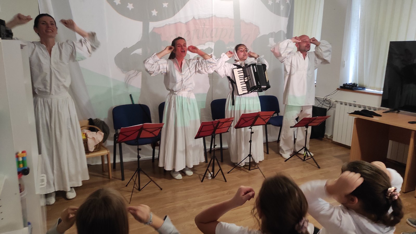 Knjižnica i čitaonica Dvor odjekivala je pjesmom i smijehom ovog utorka. Na radost i veselje učenika prvog i drugog razreda OŠ Dvor u goste je došao Teatar Poco Loco iz Zagreba. Učenici su prvo uživljeno promatrali predstavu Crvenkapica, a potom su se druženje i zabava nastavili radionicom uz pjesmu. Uz malo glumačke magije tako je običan školski dan pretvoren u mali svijet boja i glazbe.