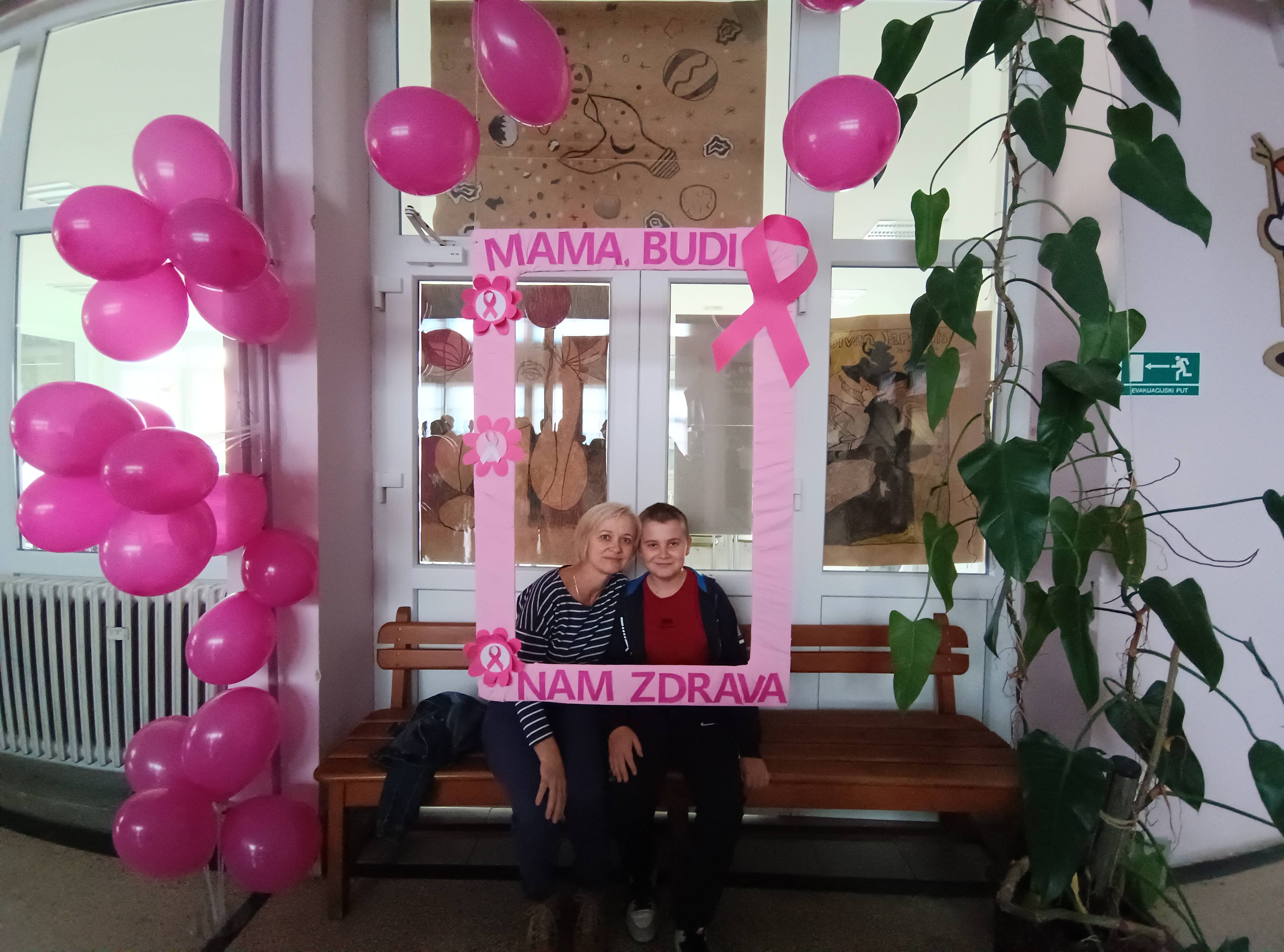 Mjesec listopad još nazivamo i ružičasti listopad, jer tijekom njega obilježavamo mjesec borbe protiv raka dojke. Mama, budi zdrava, naziv je akcije kojom se želi pobuditi svijest o potrebi redovnih preventivnih pregleda zbog sprečavanja razvoja ove bolesti. U našoj školi stoga smo u utorak, 29. listopada 2024., održali simboličnu akciju - fotografiranje mama i djece u posebno osmišljenom kutku s ukrasnim okvirom. Zahvaljujemo svim mamama na odazivu, a fotografije pogledajte u prilogu!