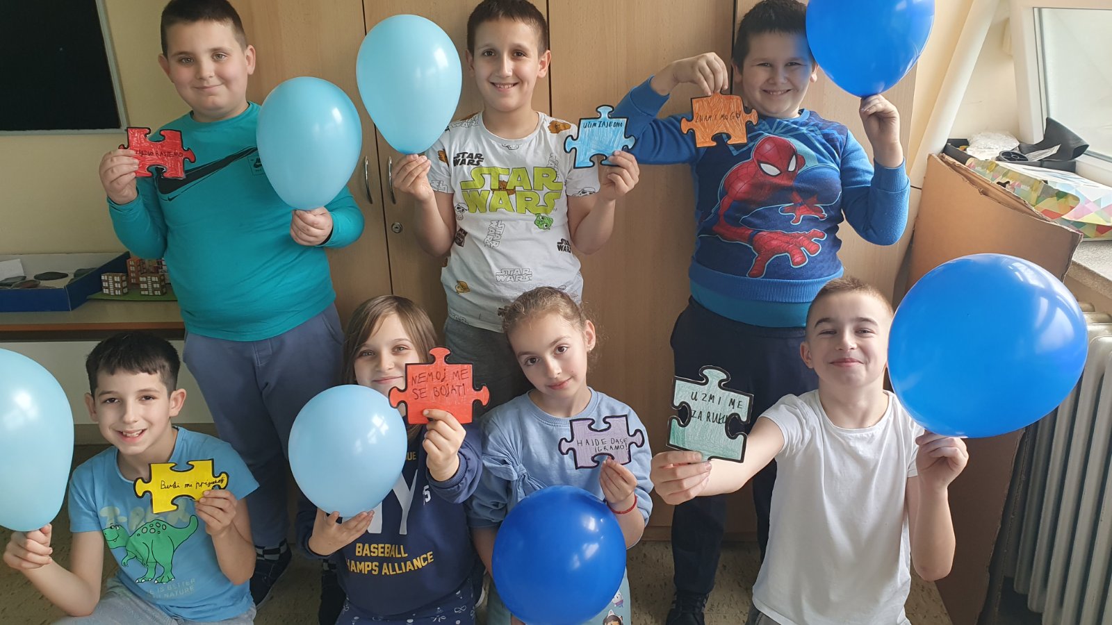 Plava boja i puzzle znak su svjesnosti o autizmu te su učenici 3.a i njihova učiteljica obukli plave majice, puhali plave balone, bojili dijelove puzzli i spajali ih u jednu cjelinu.