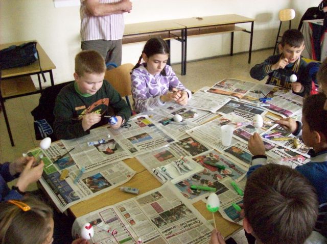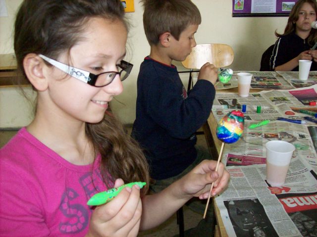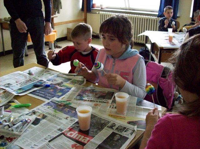 Mala skupina učenika petih razreda također se uključila u ukrašavanje jaja, te su iz ove stvaraonice izašla mnoga vesela šarena jaja - simboli proljeća i novog života.