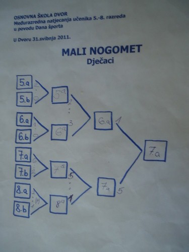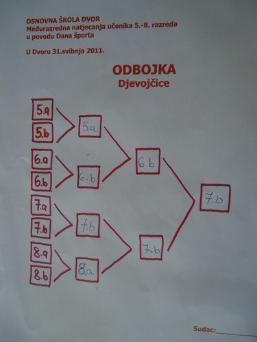 Nakon vrlo uzbudljivih utakmica između razrednih odjela i pokazanog umijeća u odbojci i nogometu, poredak je slijedeći:
