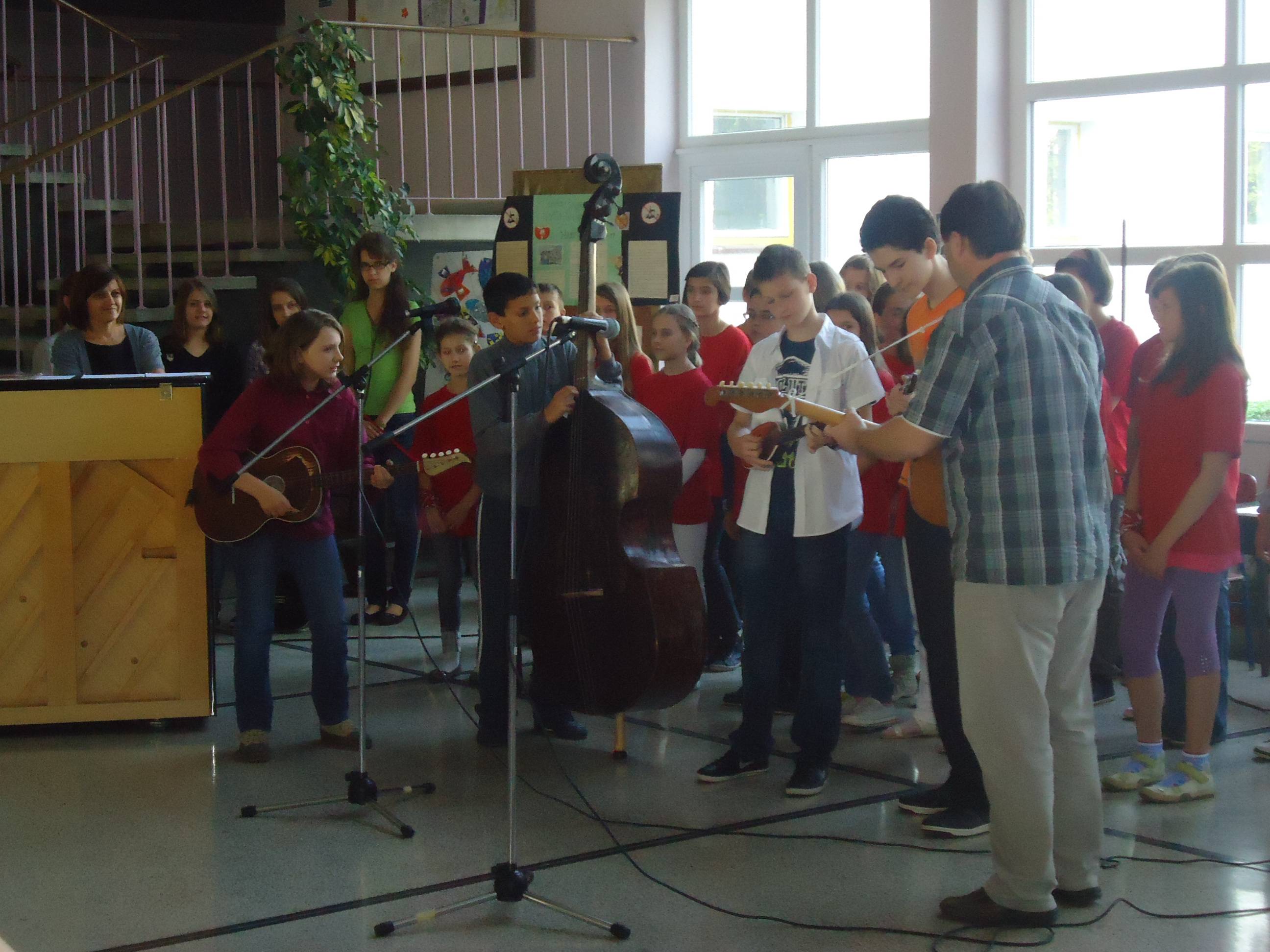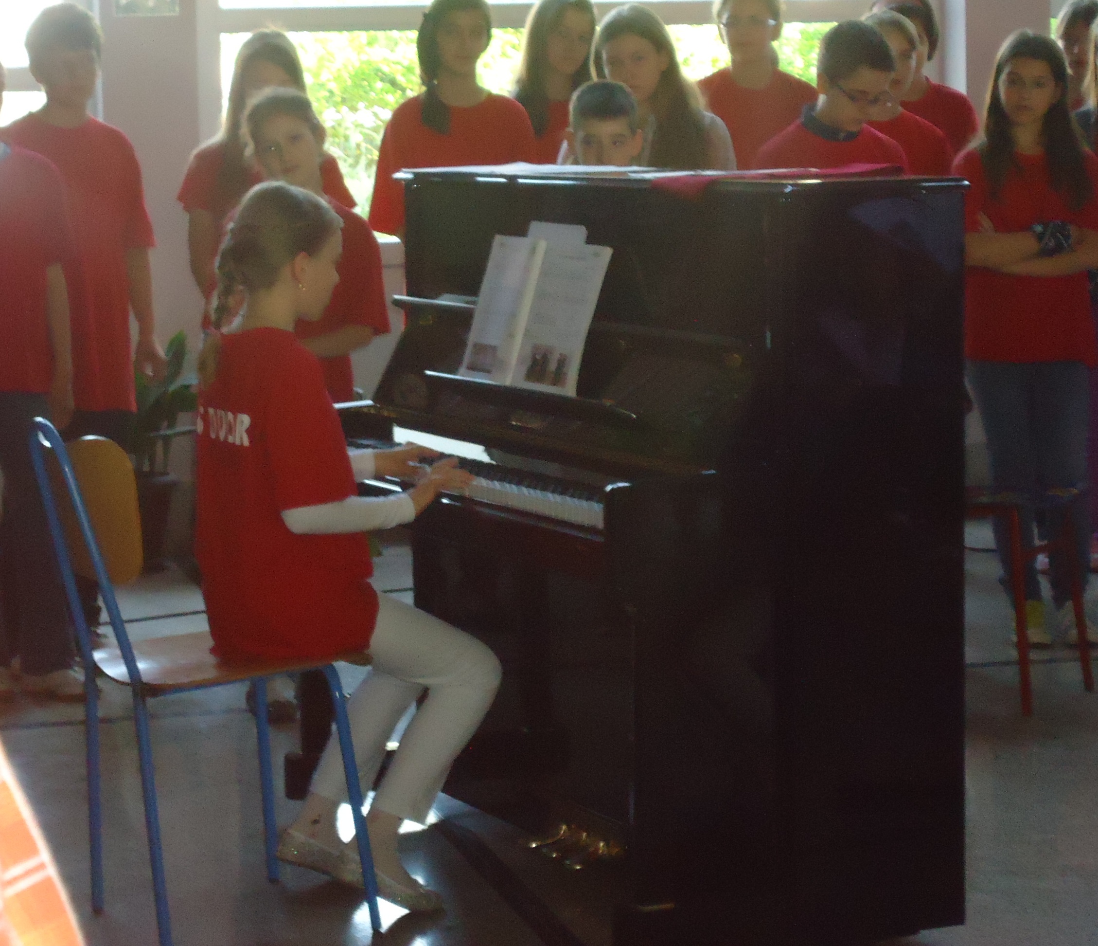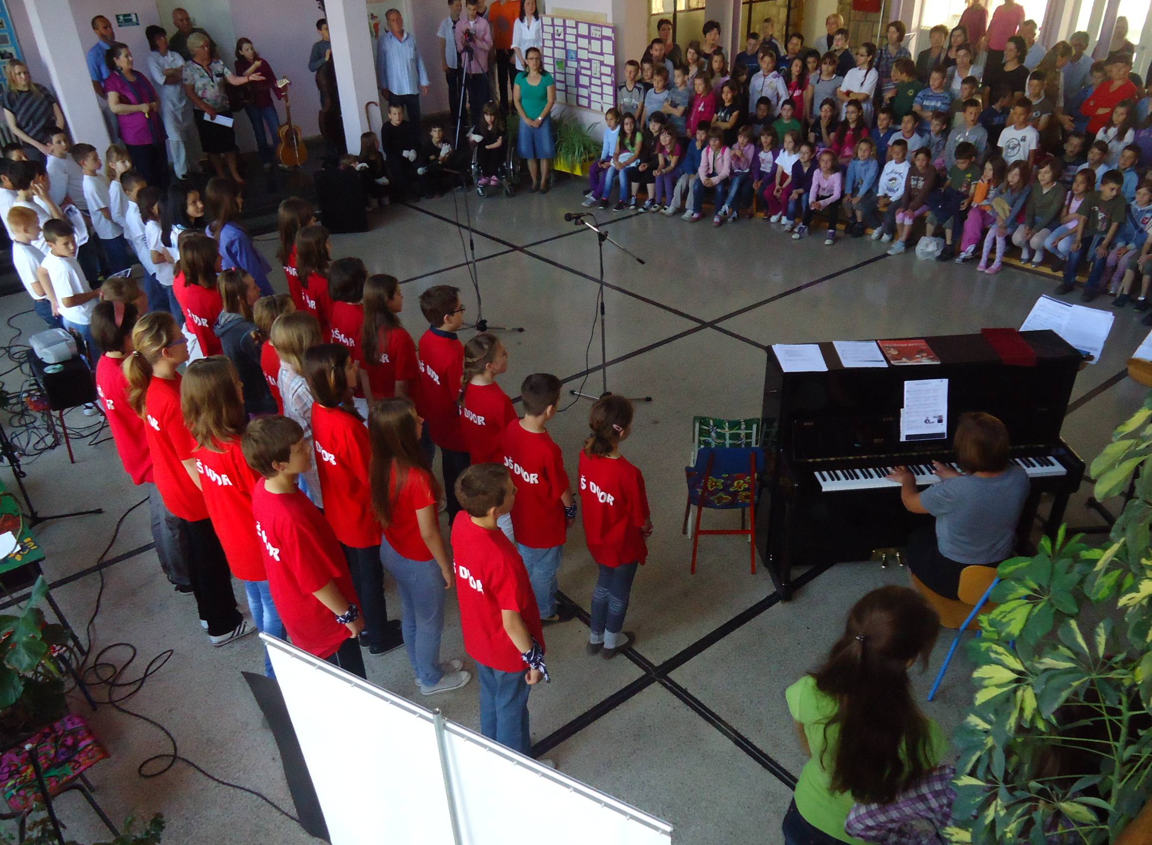 Pjevački zbor naše škole otpjevao je nekoliko pjesama, a zvuci novog pijanina odzvanjali su holom škole.