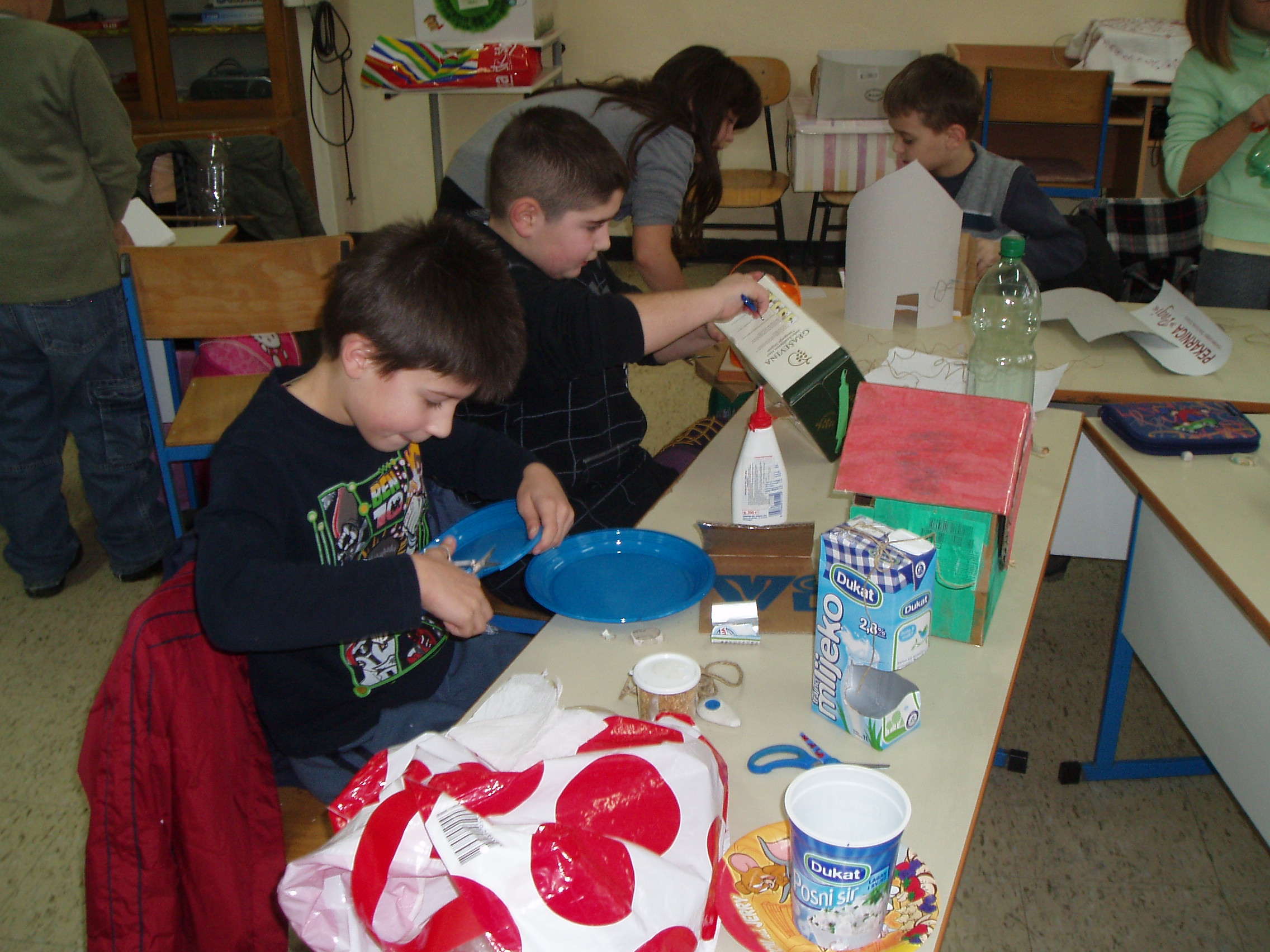 Za to im je bio potreban otpadni materijal: plastične čaše, tanjuri, boce, karton, drvene dašćice... U postavljanju kućica u pomoć im je priskočio naš vrijedni domar, Mijat Barić. U svaku kućicu postavljena je i hrana, sjemenke. Učenici će odsada svakodnevno obilaziti školski vrt, redovito će donositi hranu ptičicama, a vjerujemo da će ptičice biti sretne i bezbrižno čekati novo godišnje doba!