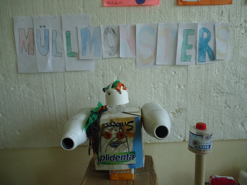 S učenicima 5. a i 5. b u mjesecu svibnju odrađena je tematska cjelina "Umweltbewußt", u kojoj smo razgovarali o tome kako očuvati okoliš, kako štedjeti energiju i što možemo učiniti kako bismo očuvali okoliš u našem kraju. U skladu s temom napravili smo "Müllmonsters" od raznog iskorištenog materijala (vrećice, boce, čepovi, kartoni,...)