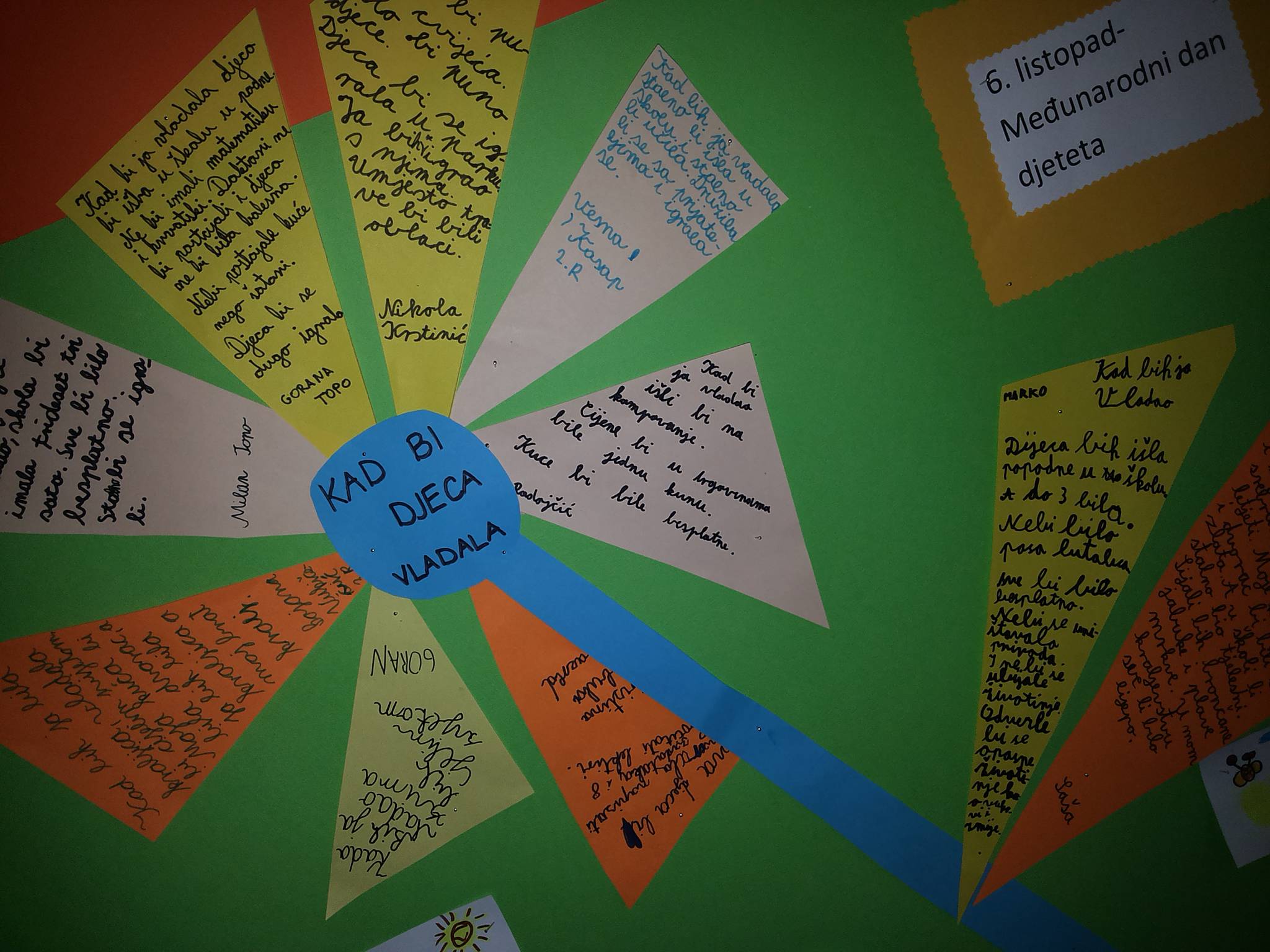 Učenici su imali zadatak osmisliti i napisati kako bi svijet izgledao kad bi oni vladali. Bilo je tu svakakvih ideja, ozbiljnih i smiješnih. U školi bi bili duže ali bi imali manje matematike. Bilo bi više djece i kuće bi bile jeftine. U trgovinama bi sve koštalo jednu kunu. Ne bi bilo napuštenih životinja i priroda ne bi bila zagađena…